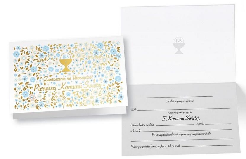 Запрошення на І Святе Причастя сині квіти 5 ШТ.