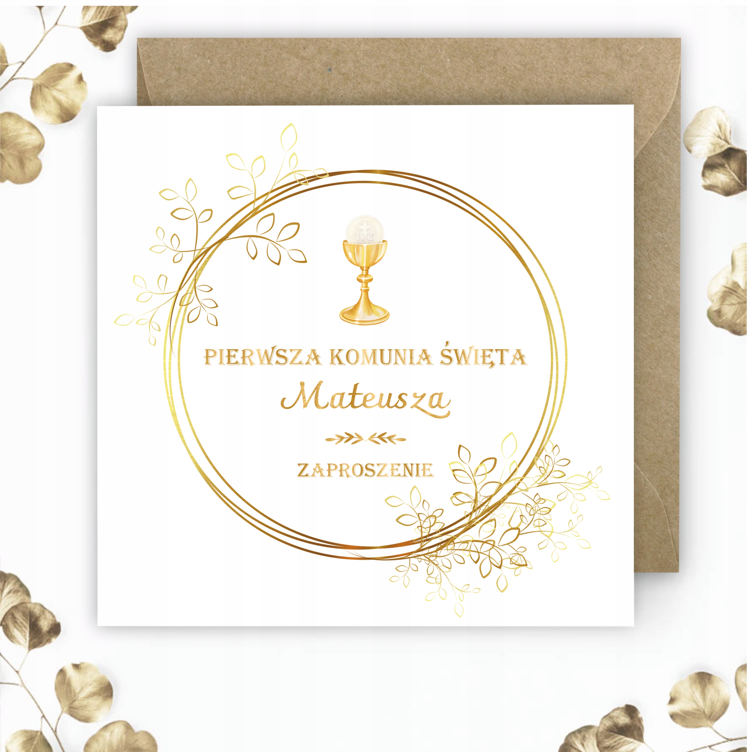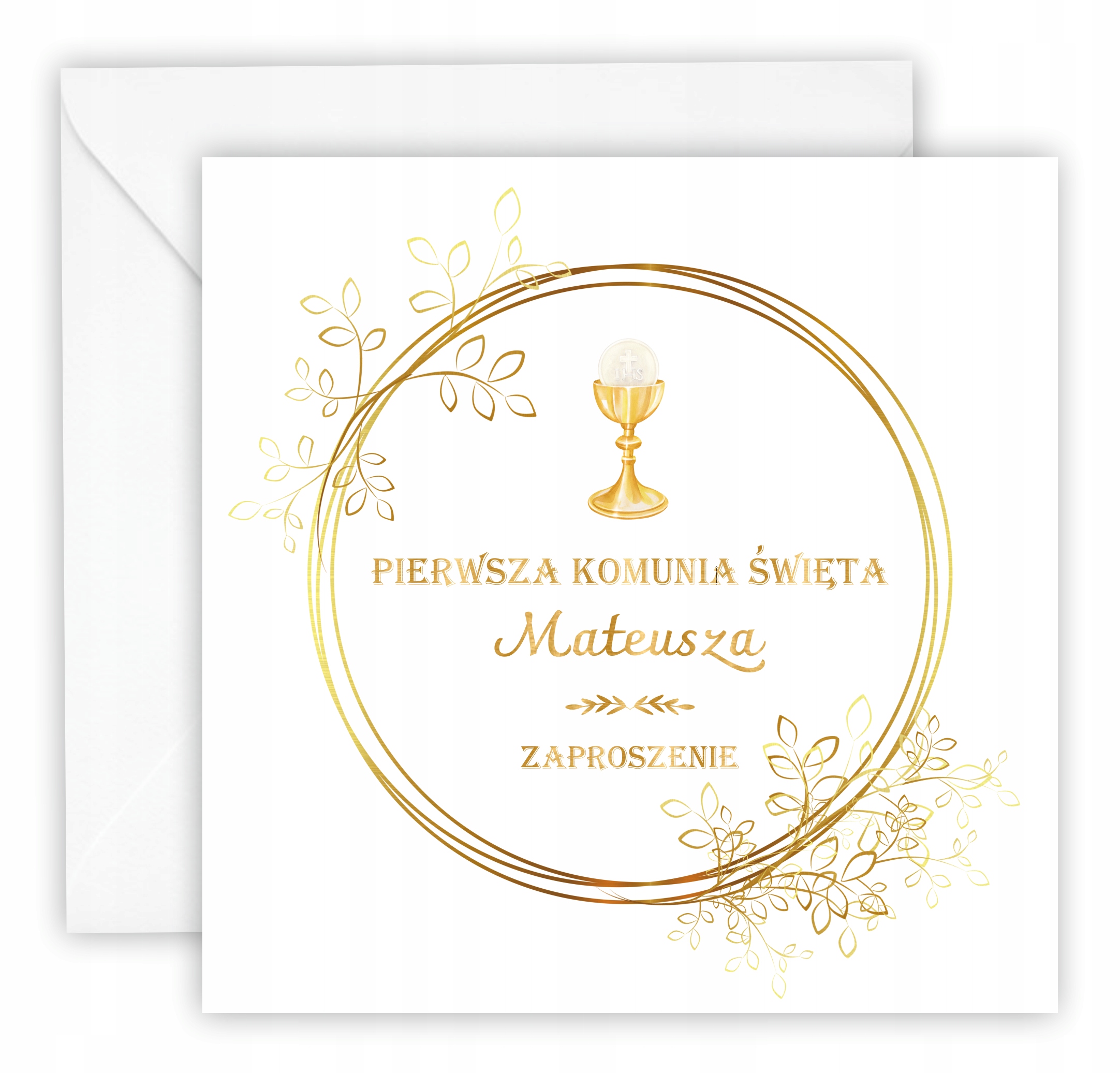 (Для входа предоставьте готовую информацию. Сделайте сообщение примерно такого вида: «Спереди: Первое причастие Матфея, внутри: Матеуш..." введите по своему усмотрению, как оно должно быть указано в приглашениях. Редактировать можно только имя ребенка, остальной текст редактировать нельзя.)