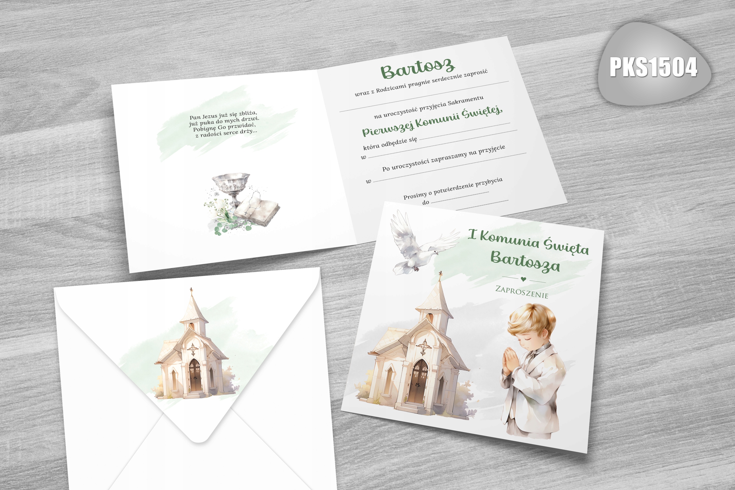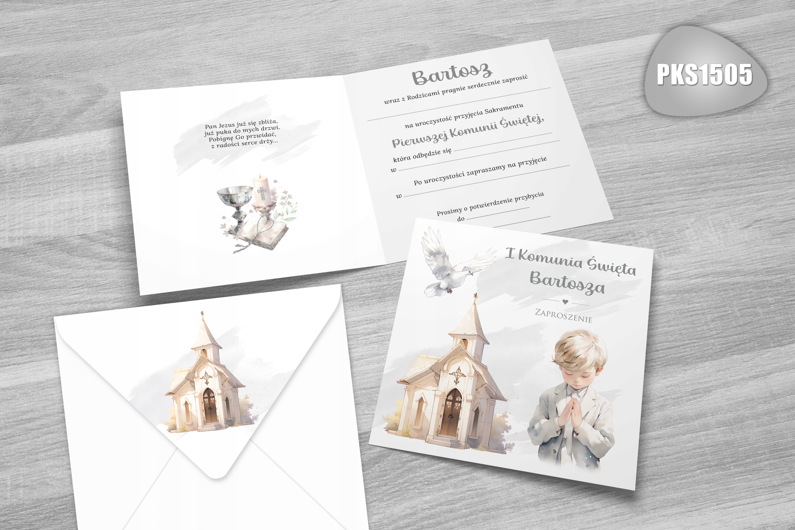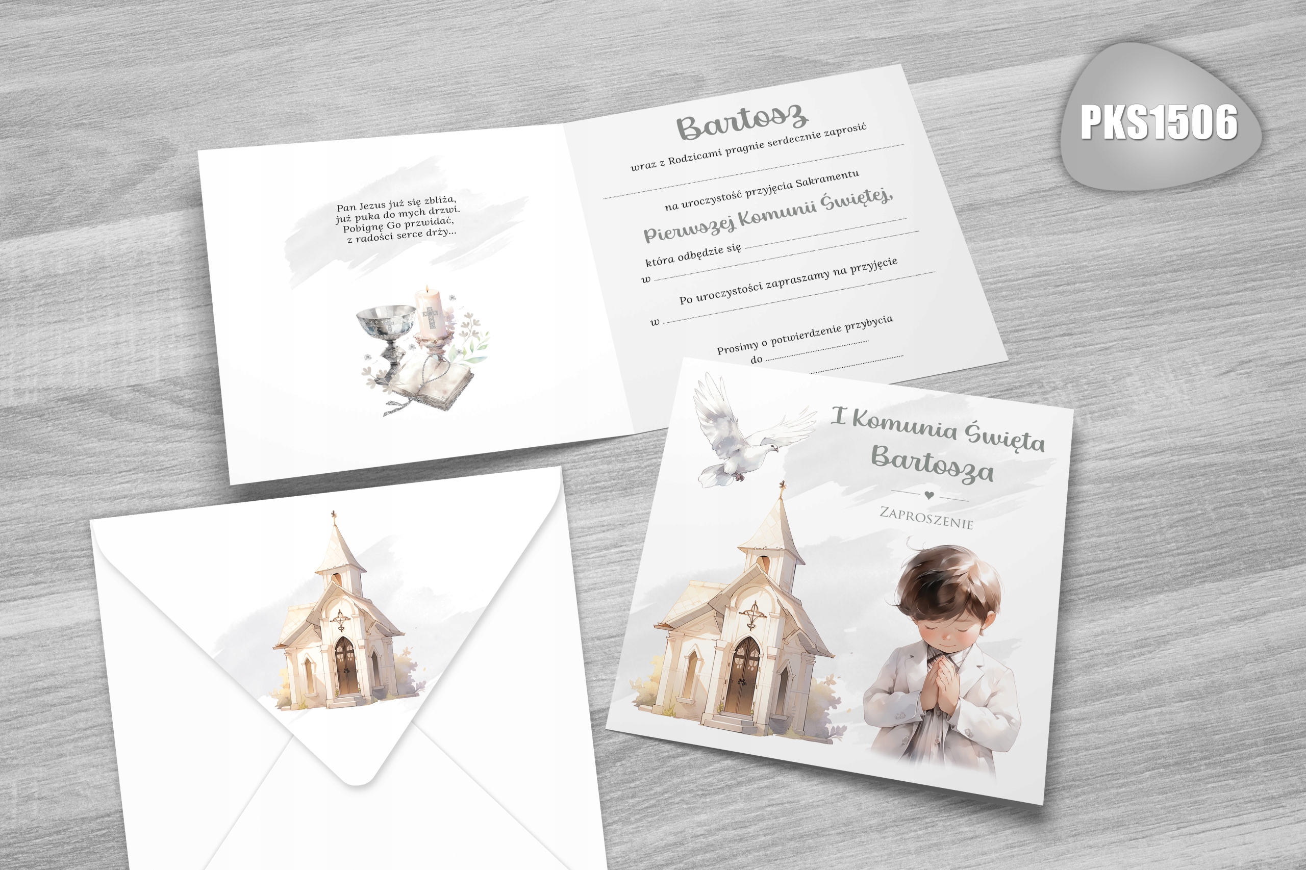 Запрошення на перше причастя ІМ'Я ДИТИНИ і КОНВЕРТ З ПРИНТОМ