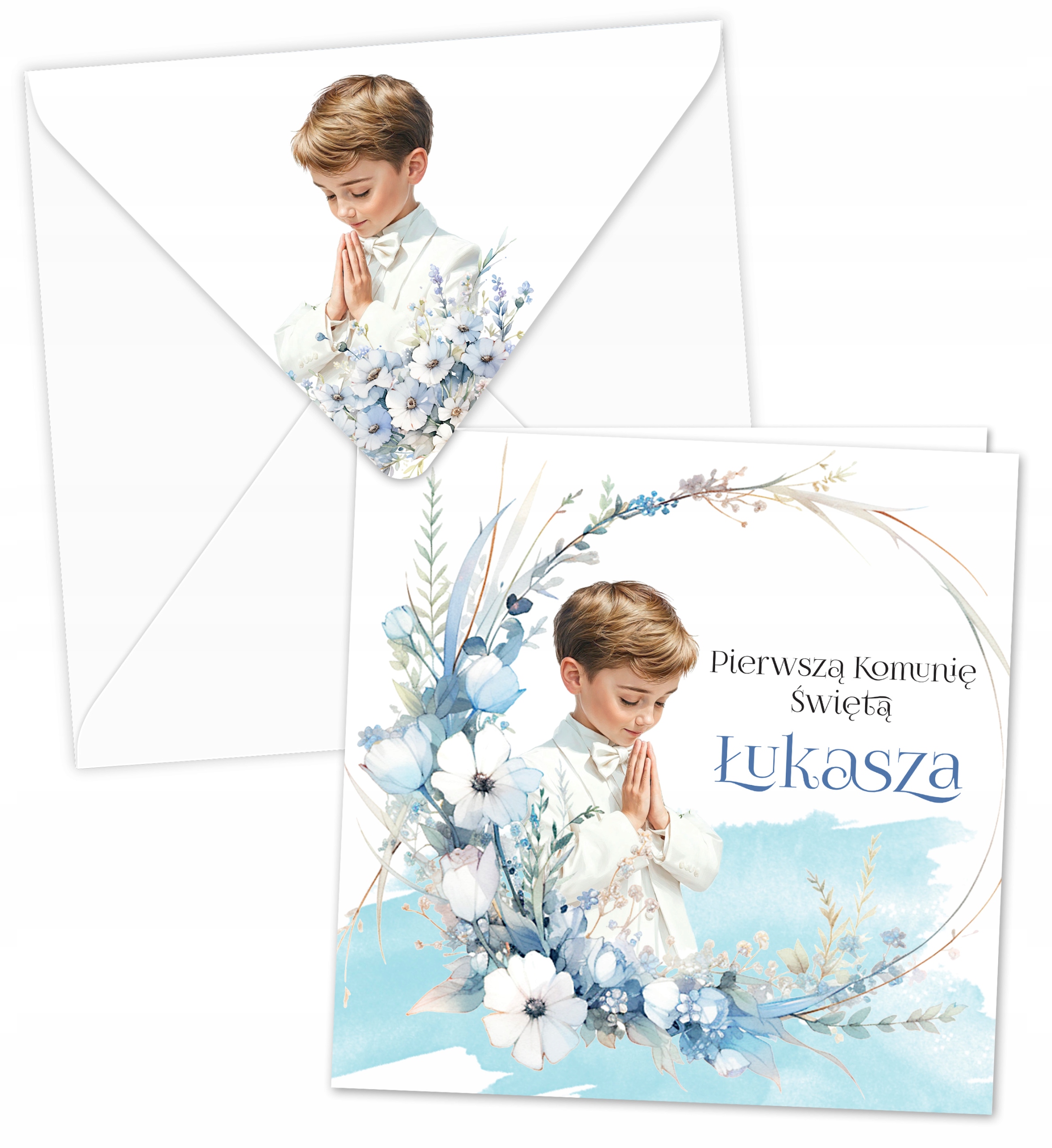 Запрошення на перше причастя ІМ’Я дитини та КОНВЕРТ З ПРИНТОМ