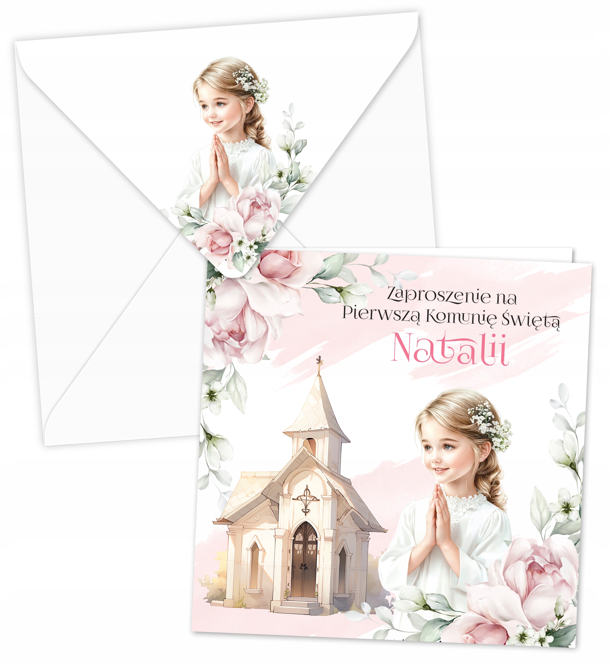 Запрошення на перше причастя ІМ’Я дитини та КОНВЕРТ З ПРИНТОМ