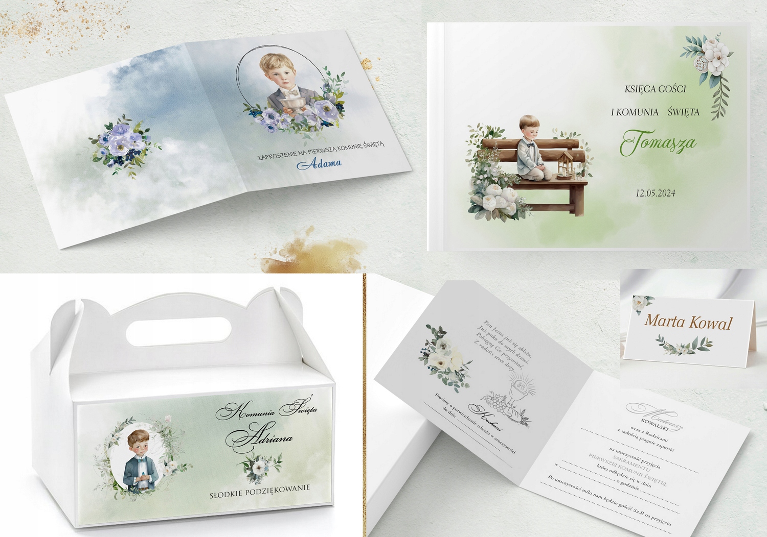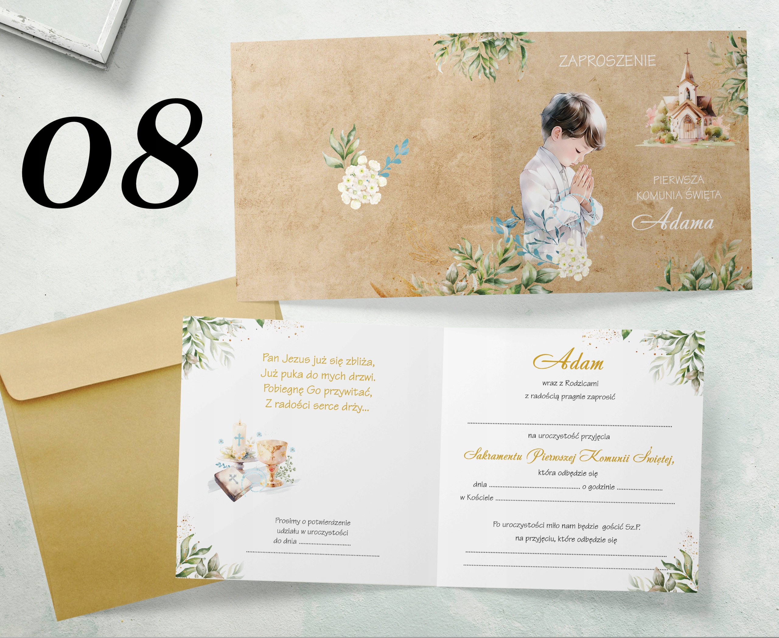 Приглашения к первому Святому Причастию - 8 дизайнов приглашений.