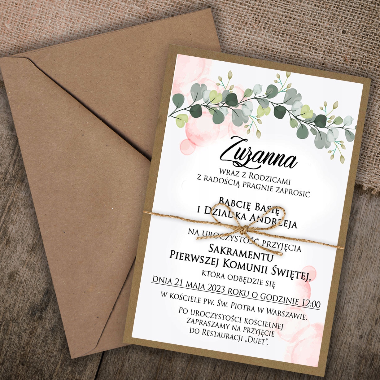 Приглашения на первое причастие в стиле бохо в деревенском стиле с персонализацией