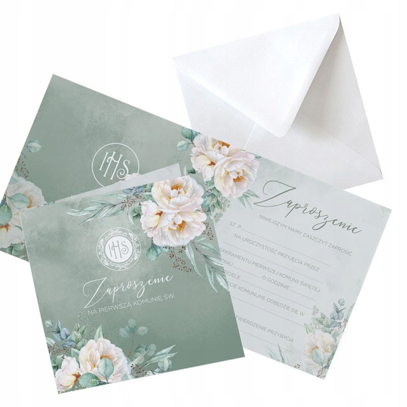 - состав: 10 приглашений на первое причастие и 10 одинаковых белых конвертов.