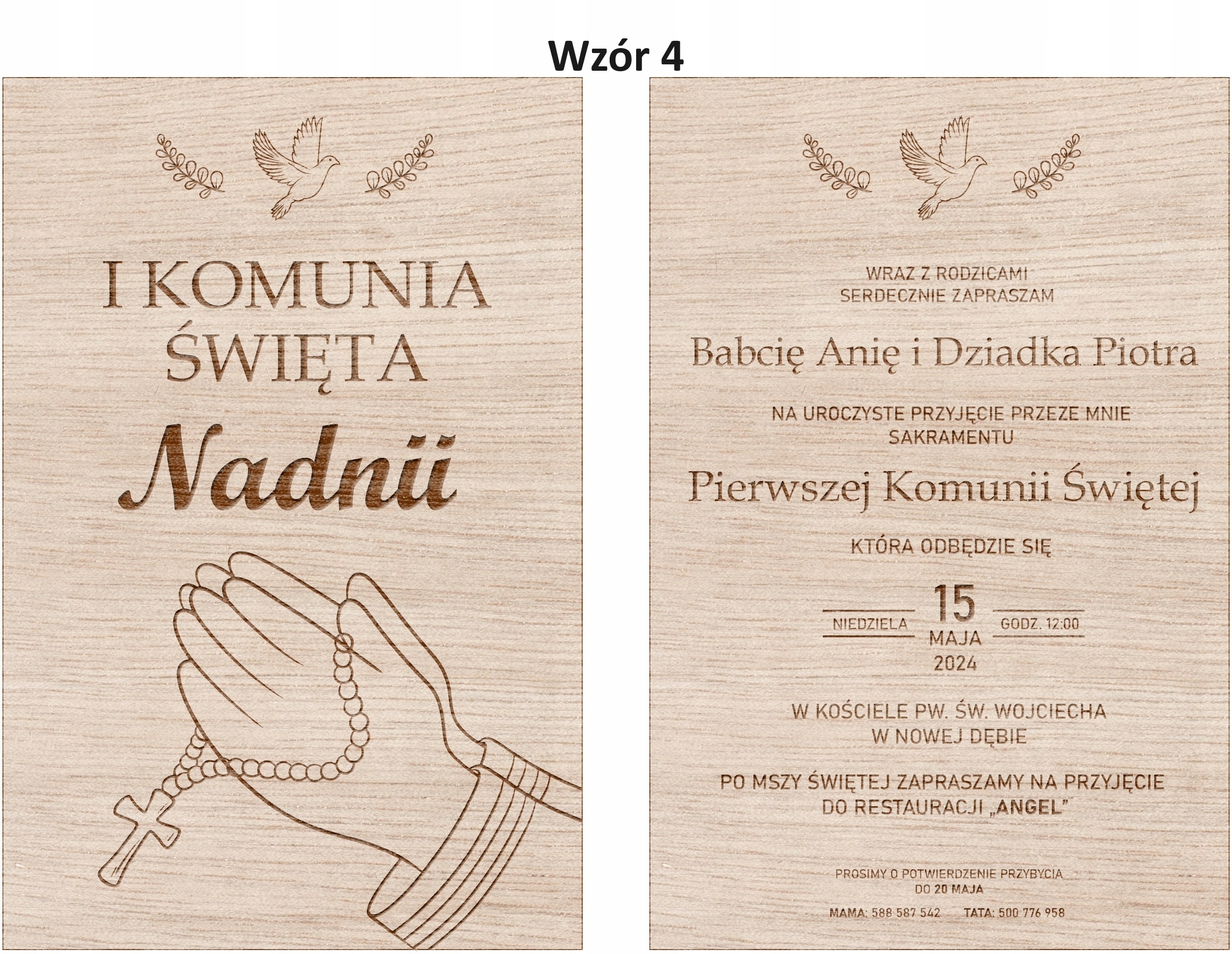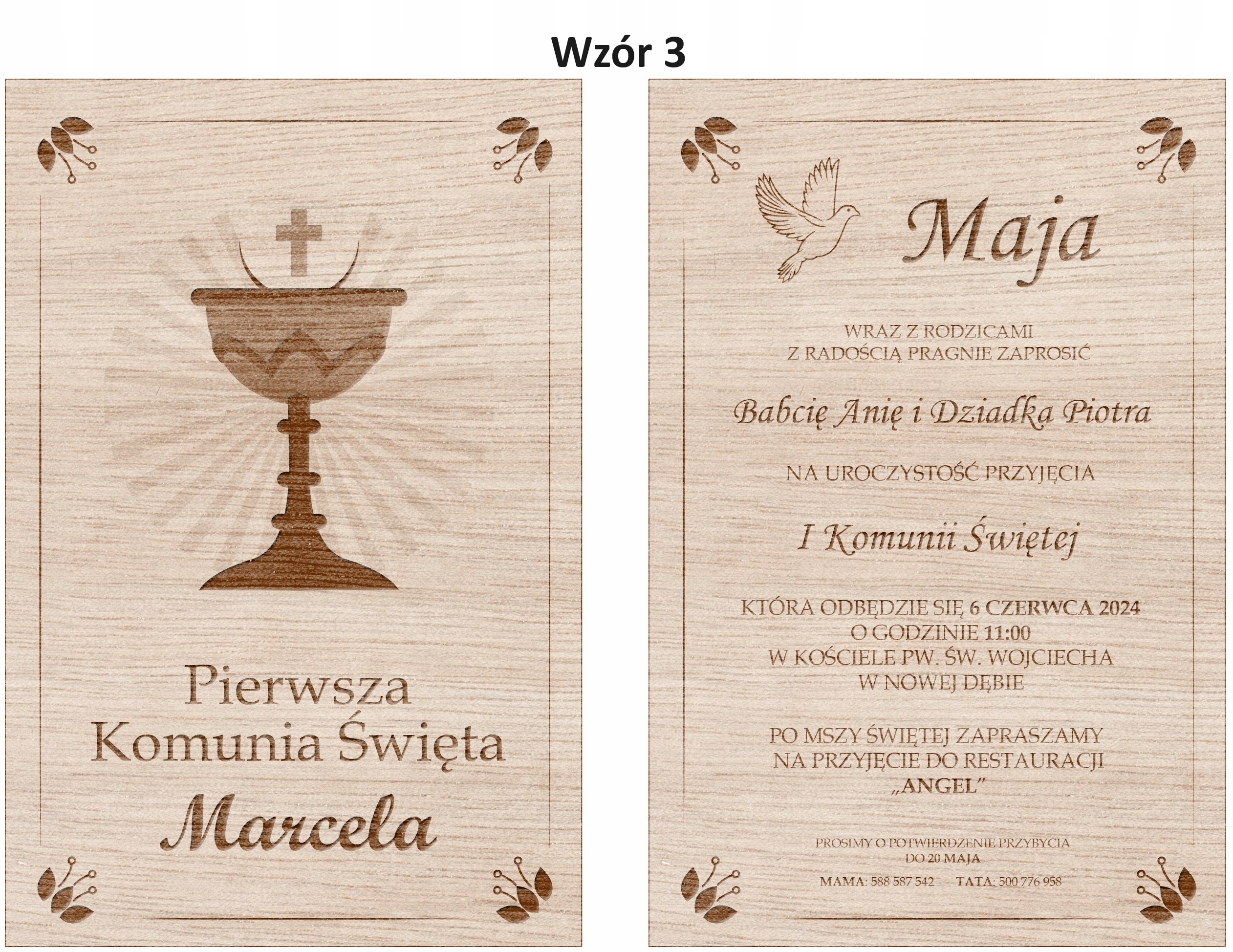 ЗАПРОШЕННЯ НА ПРИЧАСТЯ дерев'яні запрошення ПРИЧАСТЯ + КОНВЕРТ
