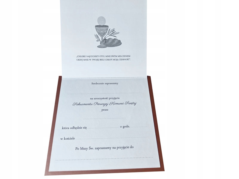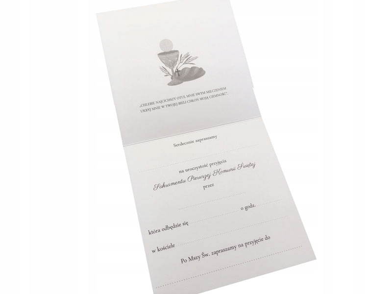 Оплачивая «Приглашение на причастие для крестной матери отца», вы можете быть уверены, что данное изделие из каталога «Приглашения» будет доставлено из Польши и проверено на целостность. В цене товара, указанной на сайте, учтена доставка из Польши. Внимание!!! Товары для Евросоюза, согласно законодательству стран Евросоюза, могут отличаться упаковкой или наполнением.