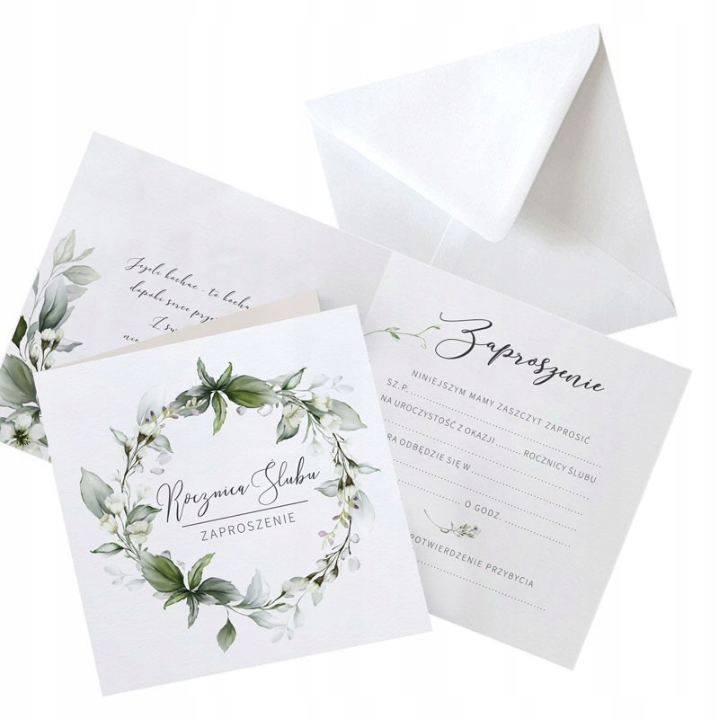 Приглашения на годовщину свадьбы написать самостоятельно, украшенные красивым цветочным венком. Приглашения упакованы по 10 штук и поставляются в элегантных белых конвертах. Внутри есть текст для самостоятельного заполнения и красивая максима. Этот набор идеально подойдет для любой годовщины свадьбы. Они позволят элегантно пригласить гостей.