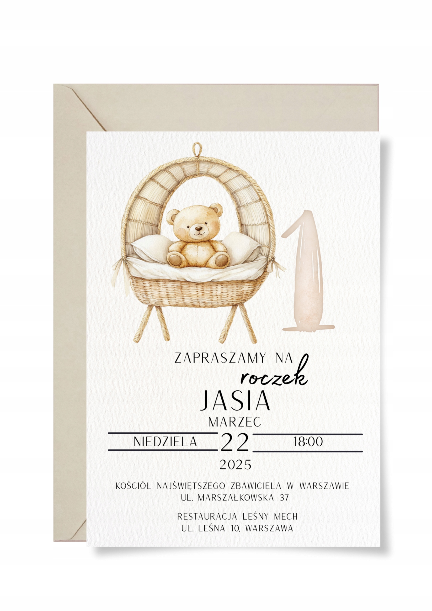 Приглашение на год ребенка. Персонализация с минималистским плюшевым мишками