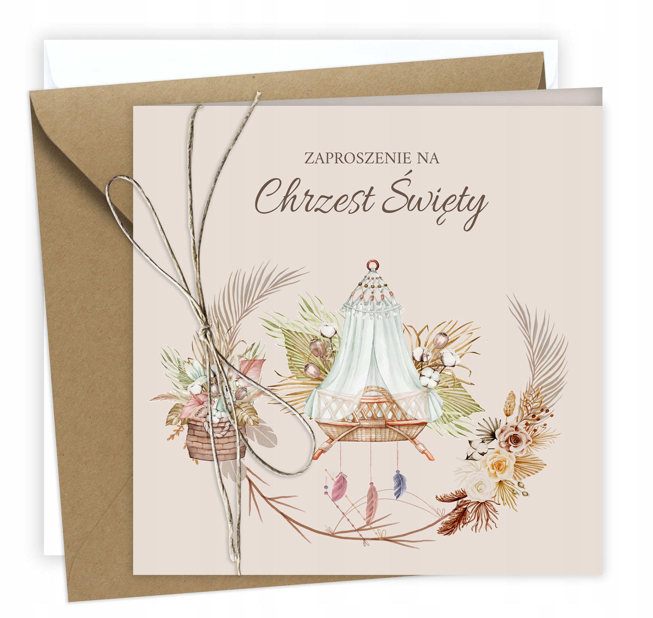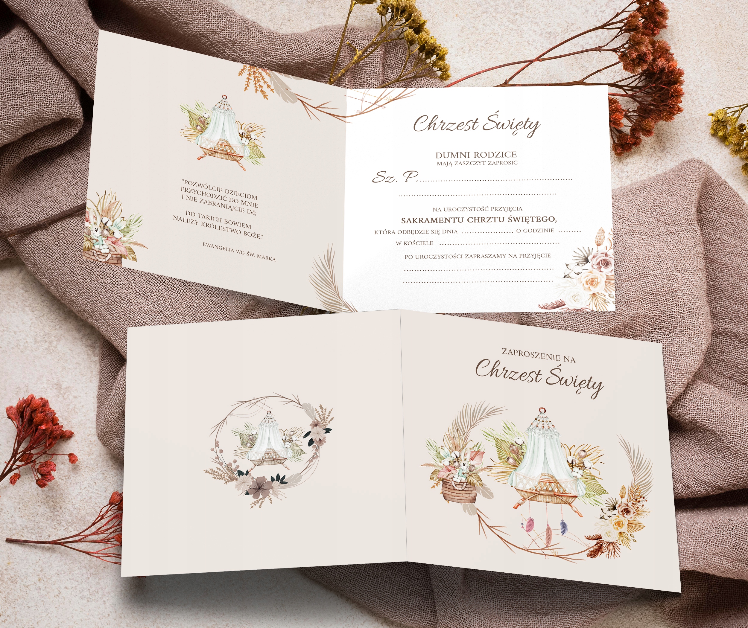 Приглашения на крещение из коллекции БОХО - 10 штук в модных цветах, идеальных для приглашения гостей на крещение.