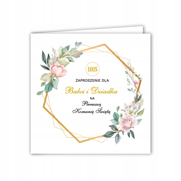 Запрошення на СВЯТЕ ПРИЧАСТЯ для БАБУСІ та ДІДУСЯ - геометричний вінок ir