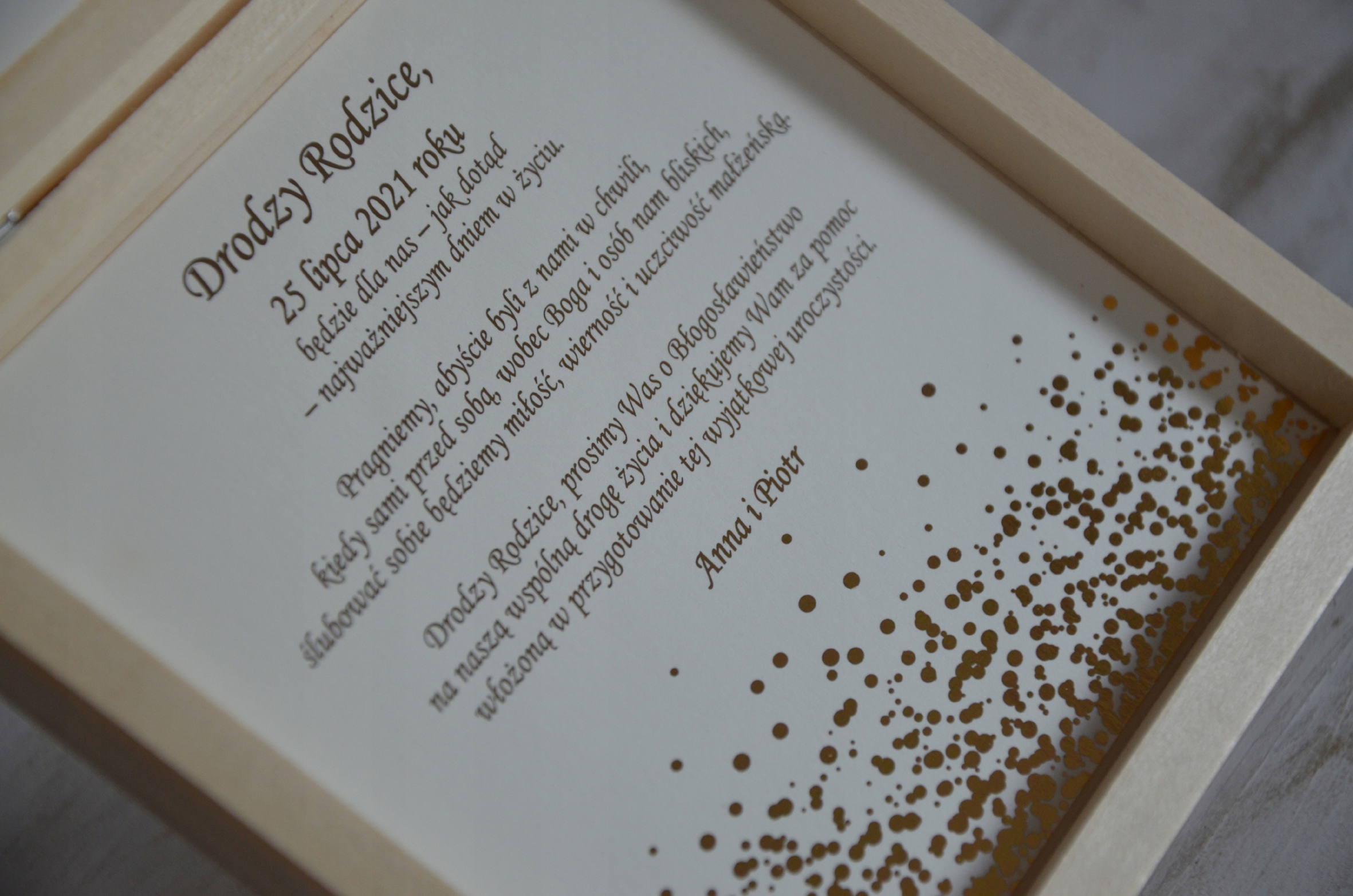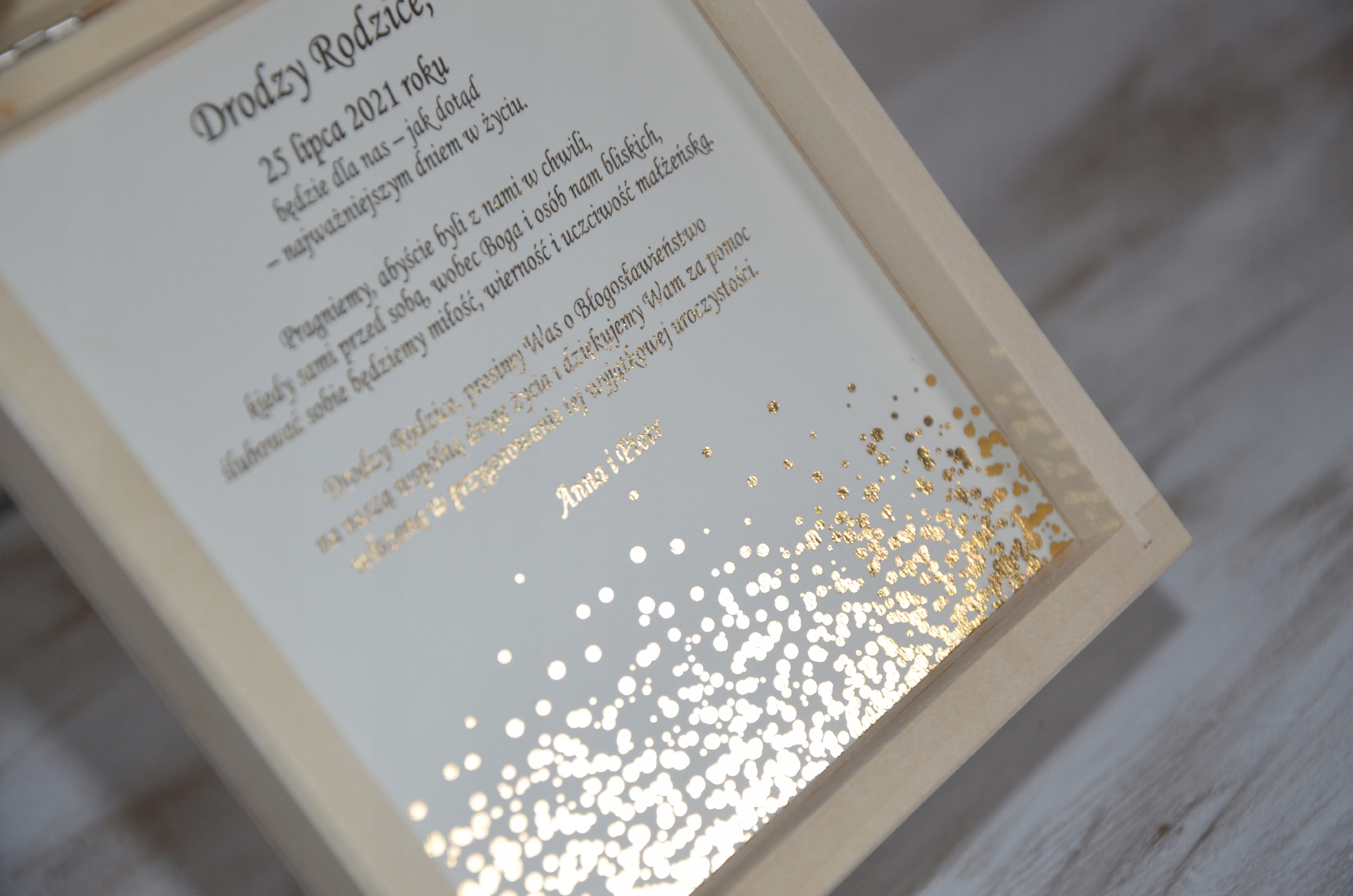 Запрошення на весілля для батьків в коробці GOLD 32