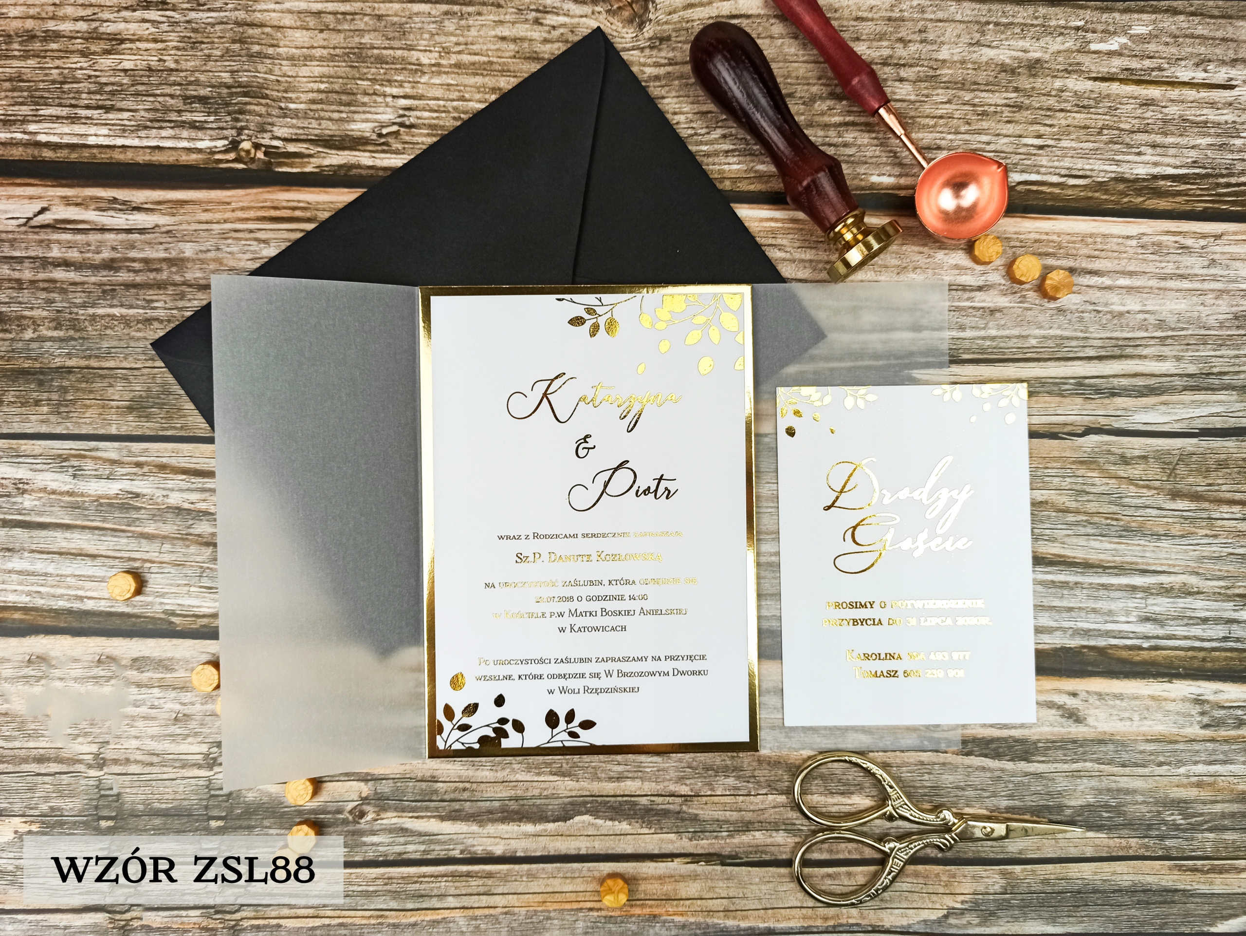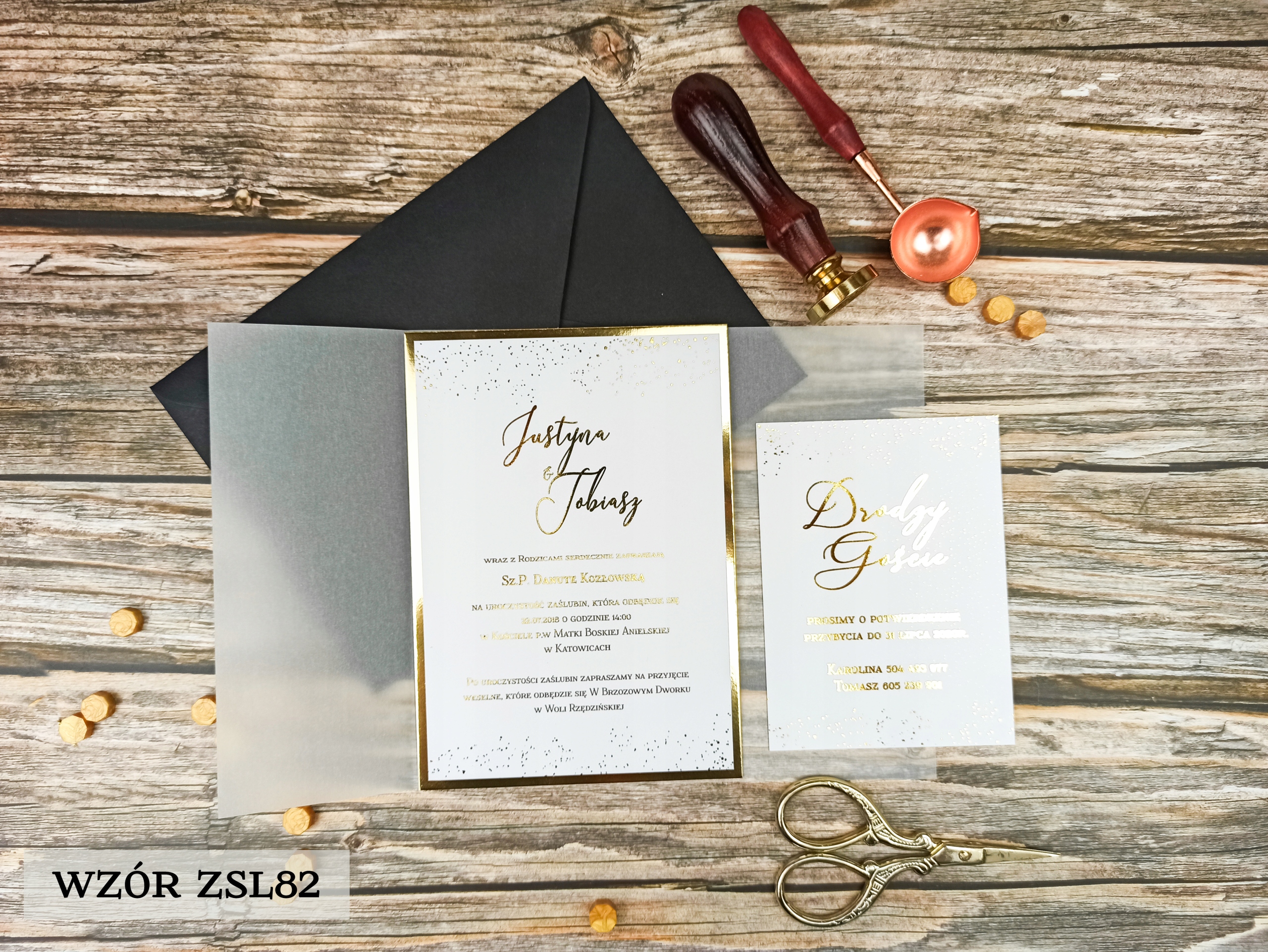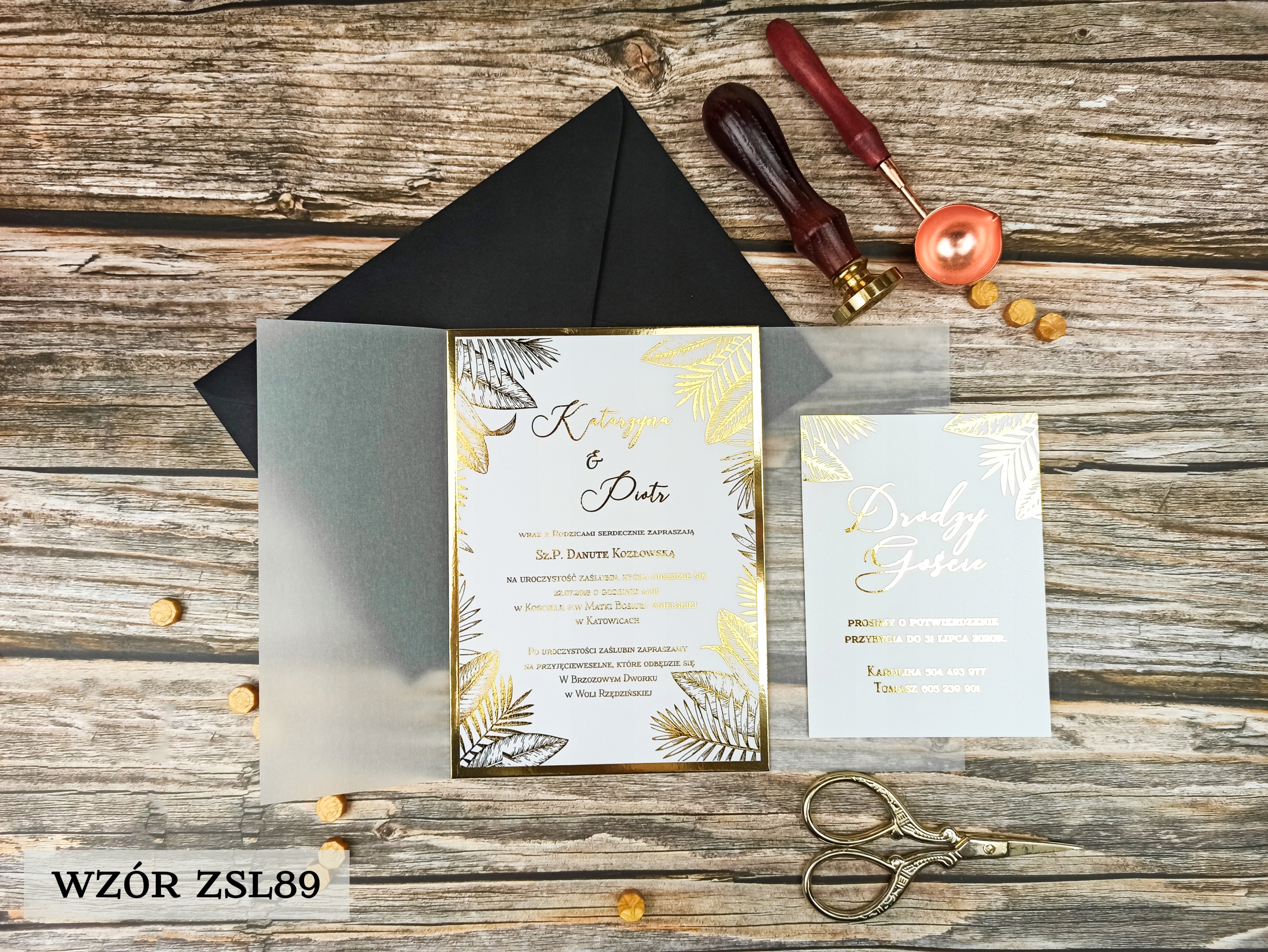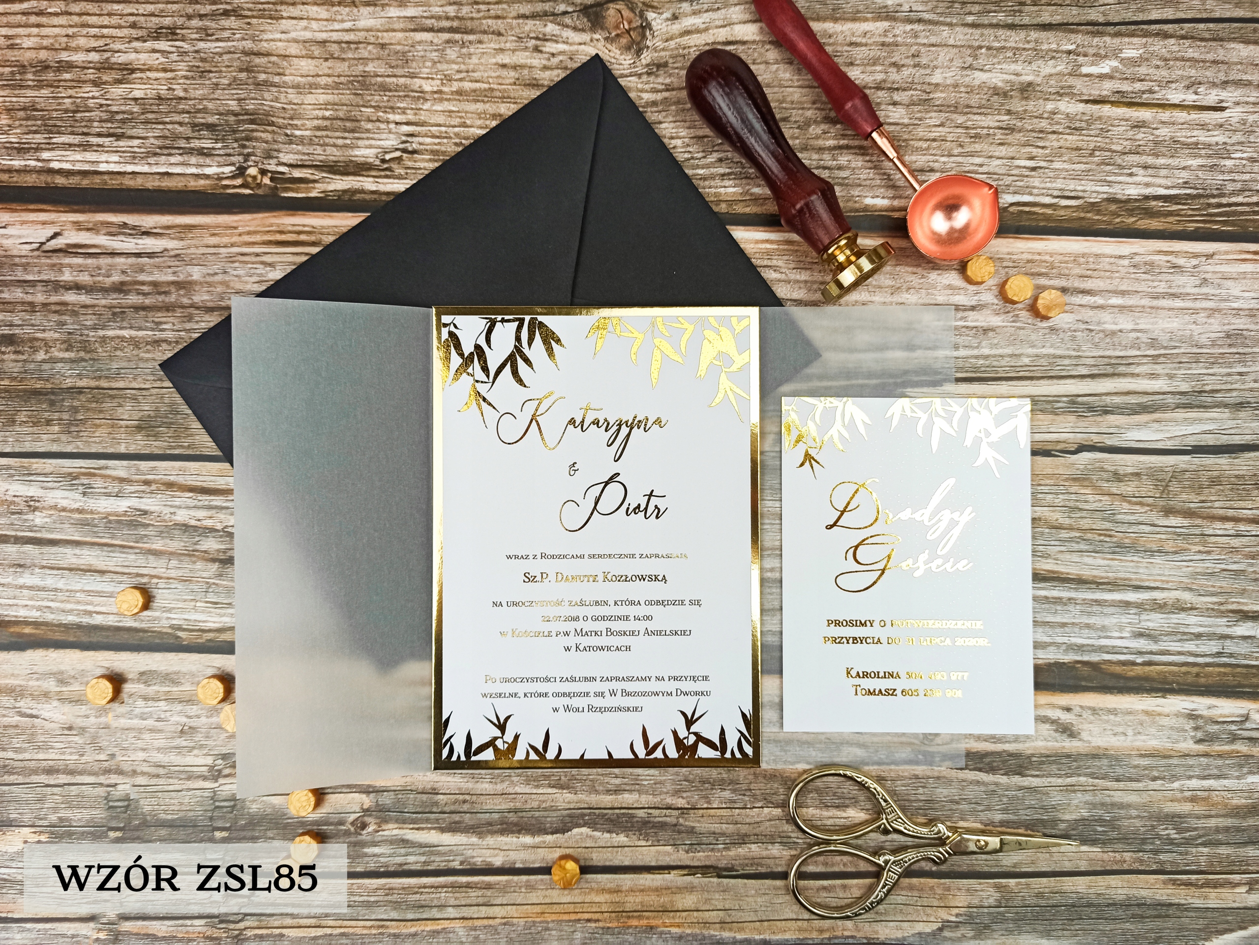 Коллекция позолоченных приглашений с калькой