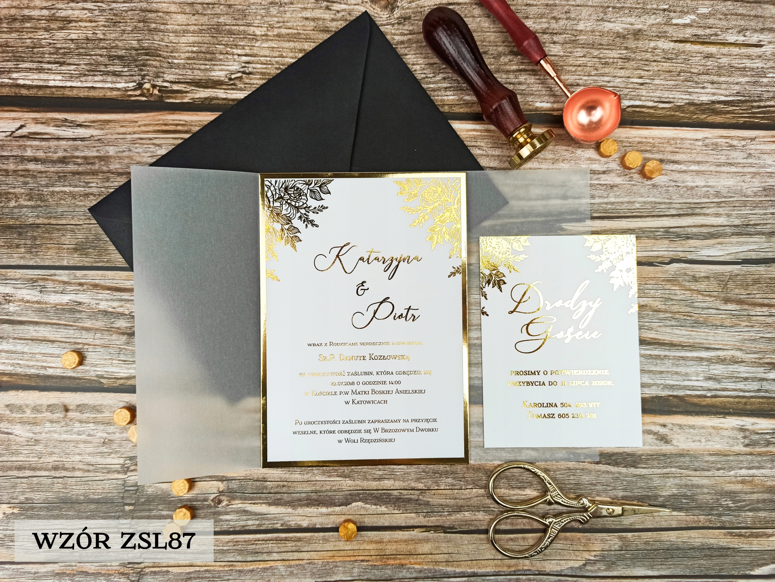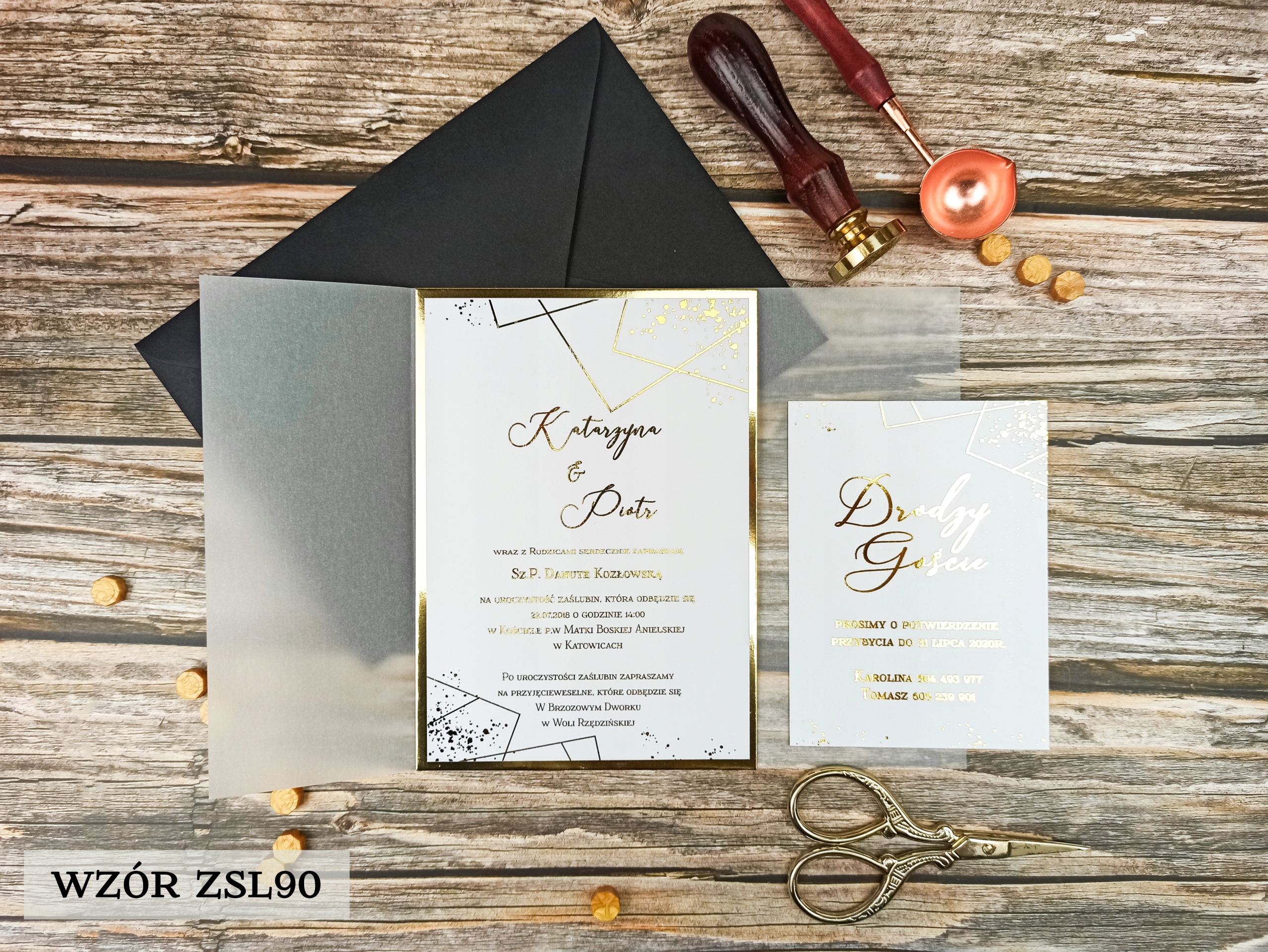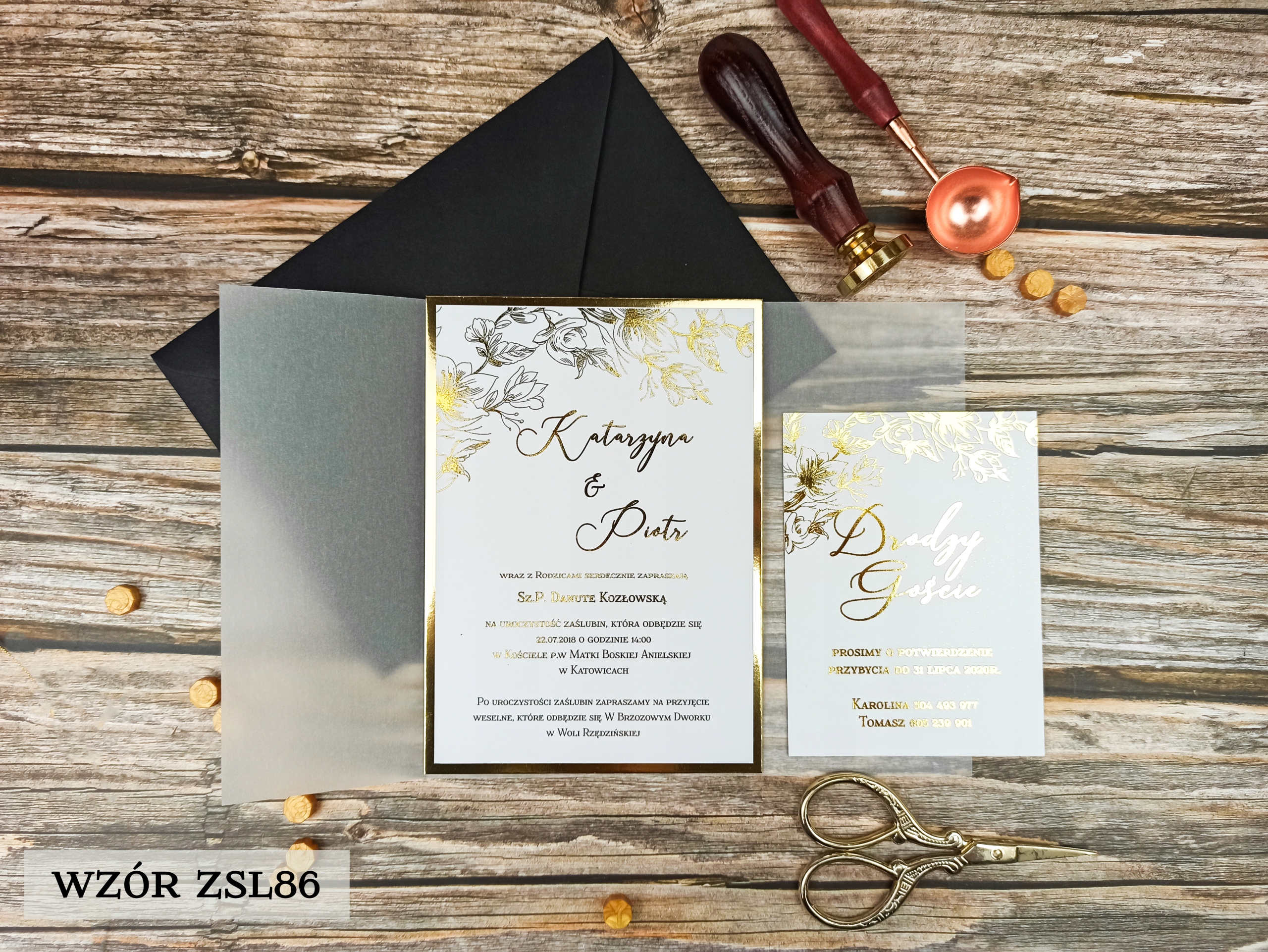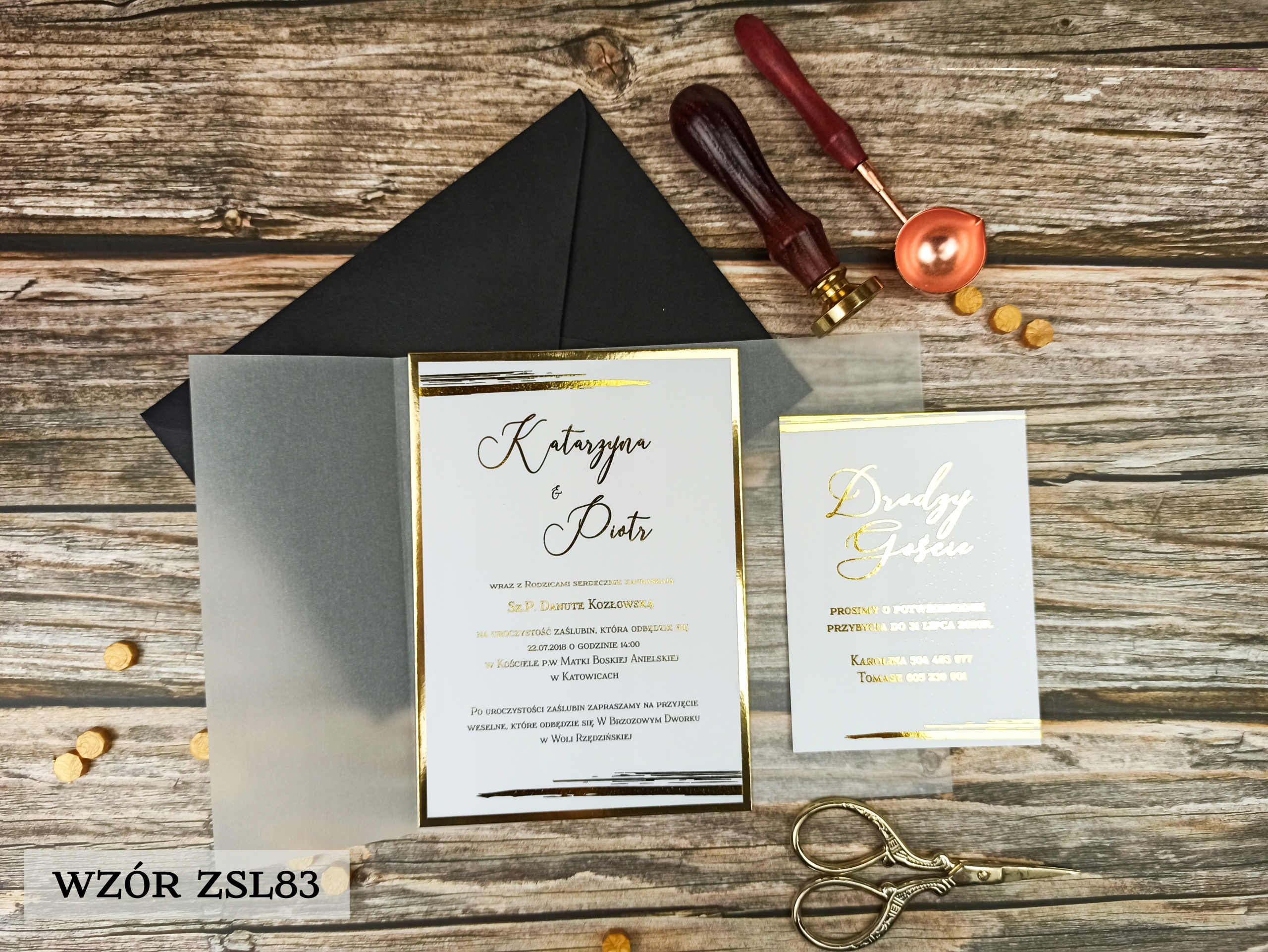 Коллекция позолоченных приглашений с калькой