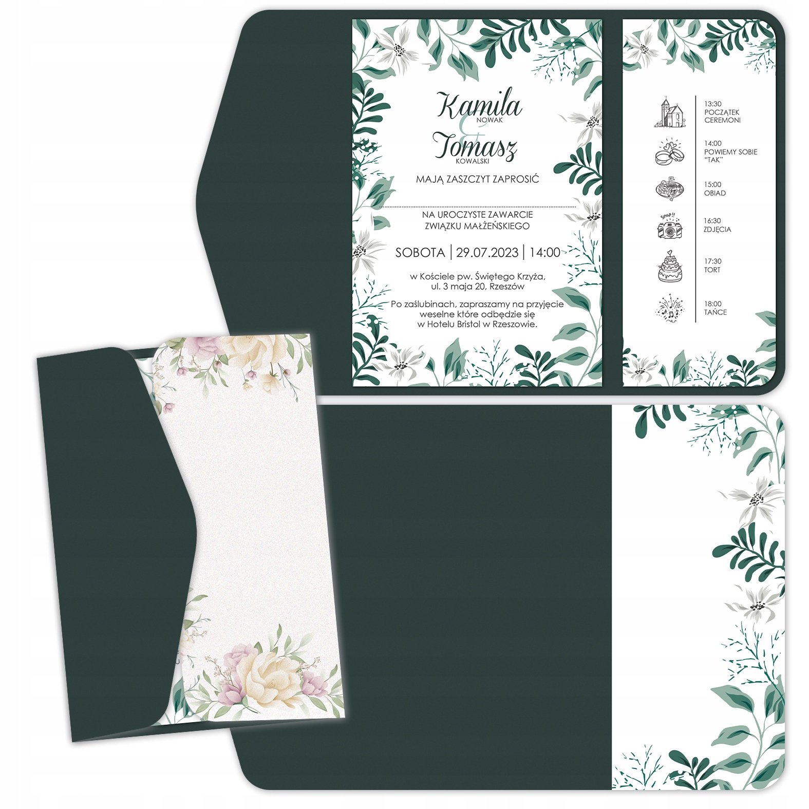СВАДЕБНОЕ ПРИГЛАШЕНИЕ RSVP КОНВЕРТ ПОЯС C ЗЕЛЕНЫЙ Z2