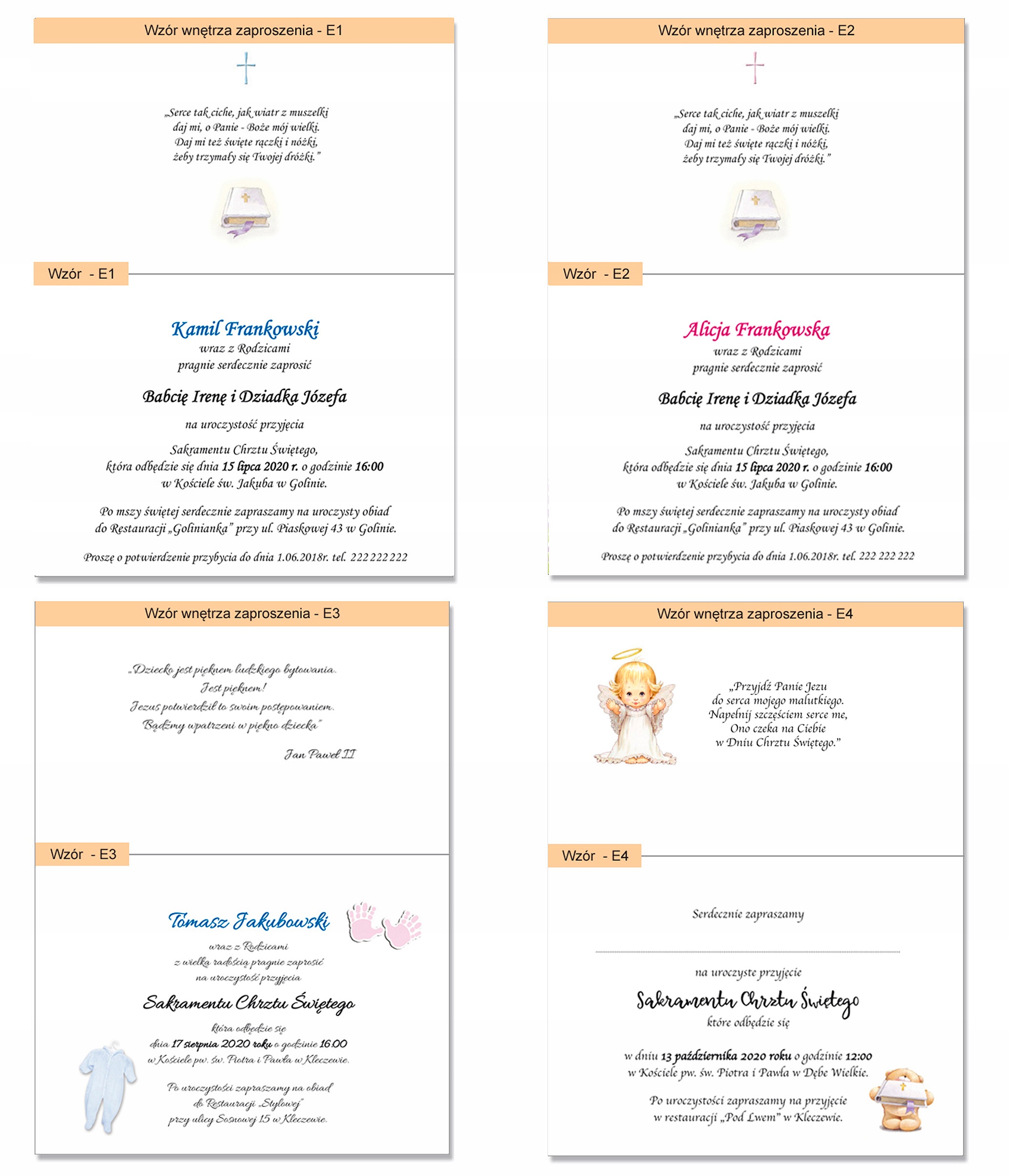 12. Выбирая отдельные стихи для крестных (только в шаблонах от Е1 до Е4), отмечайте их имена.