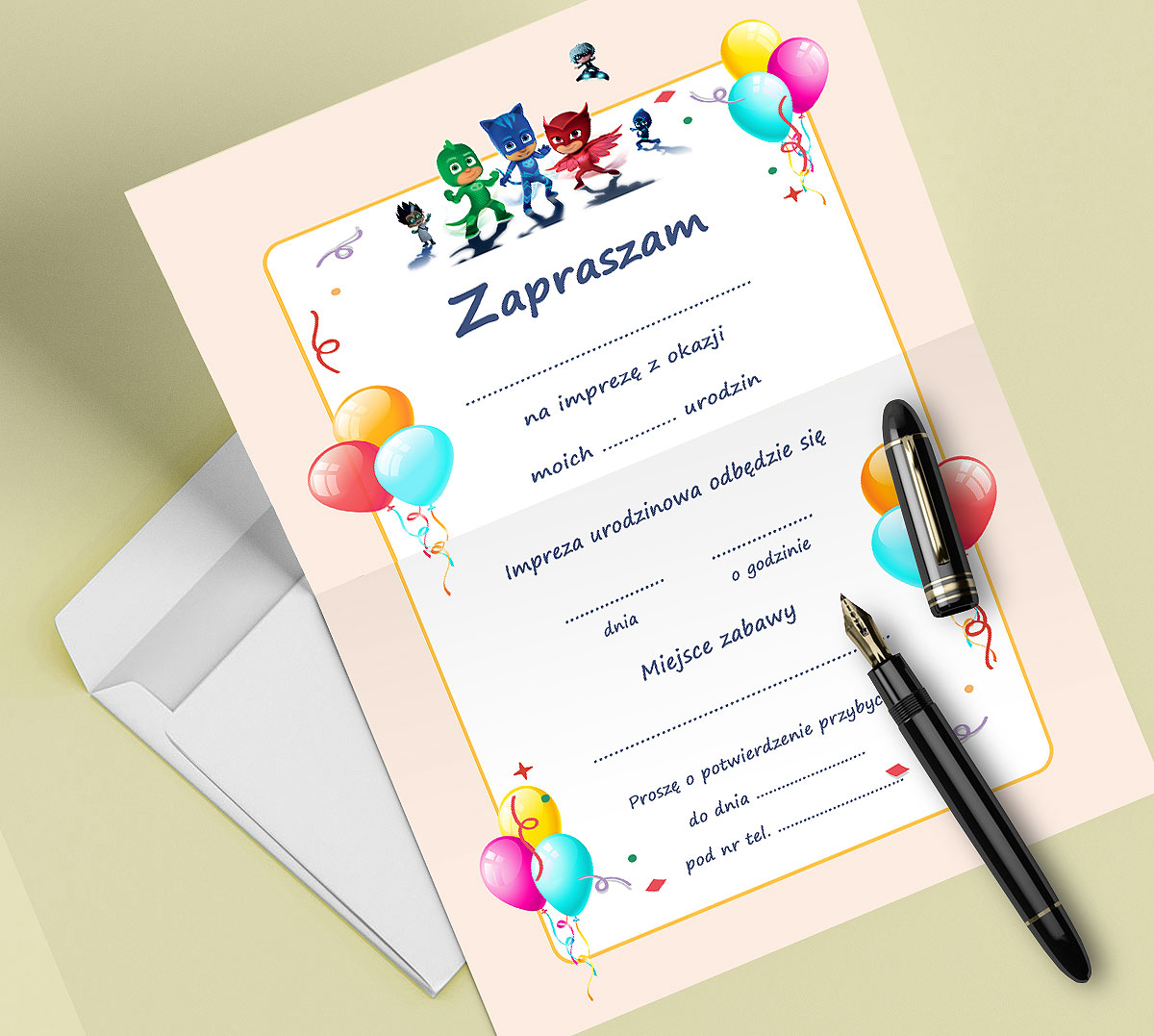 Приглашение Piżamers на день рождения ребенка + бесплатный конверт h1>