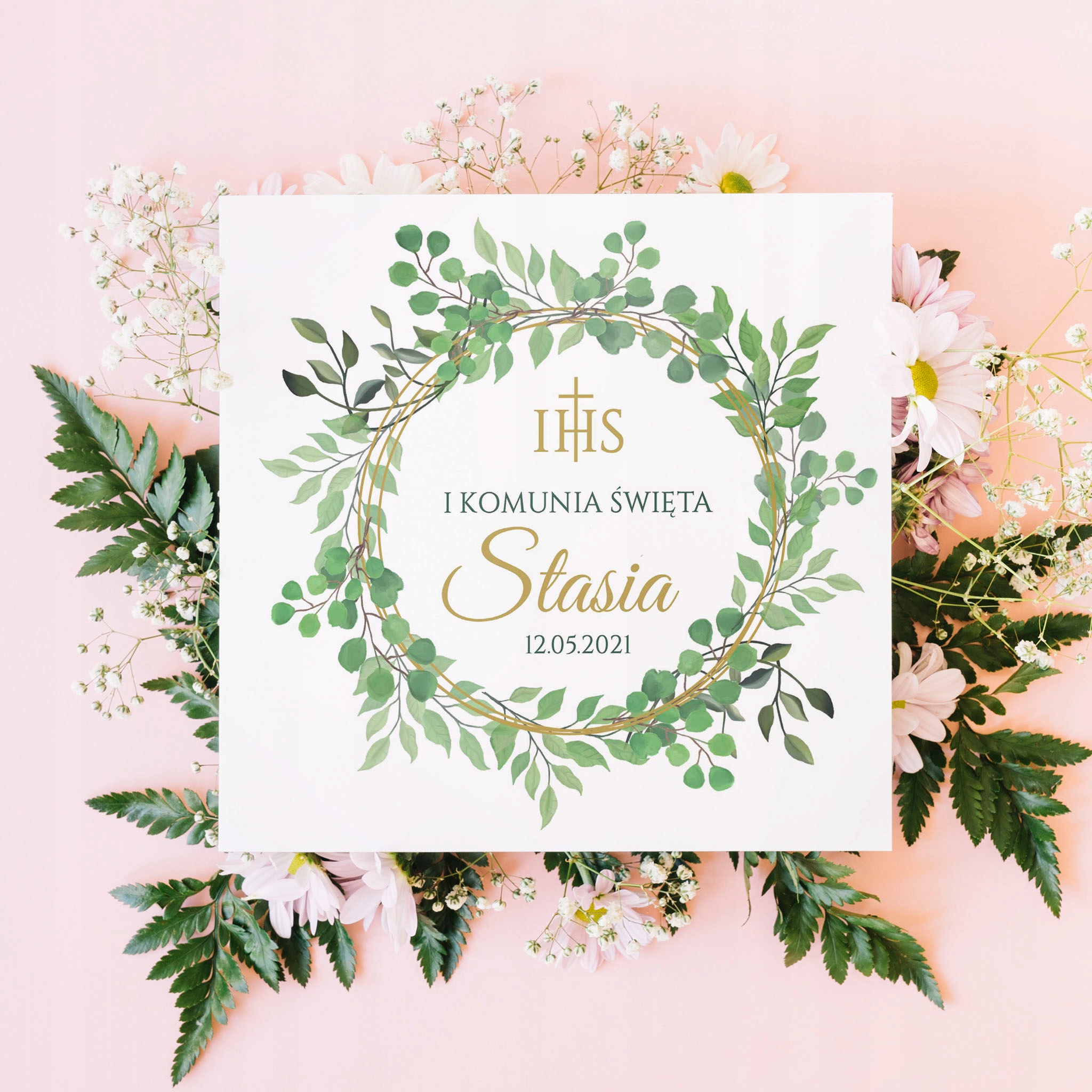 Приглашение на причастие с конвертом, венки цветы 10 ПК h2>