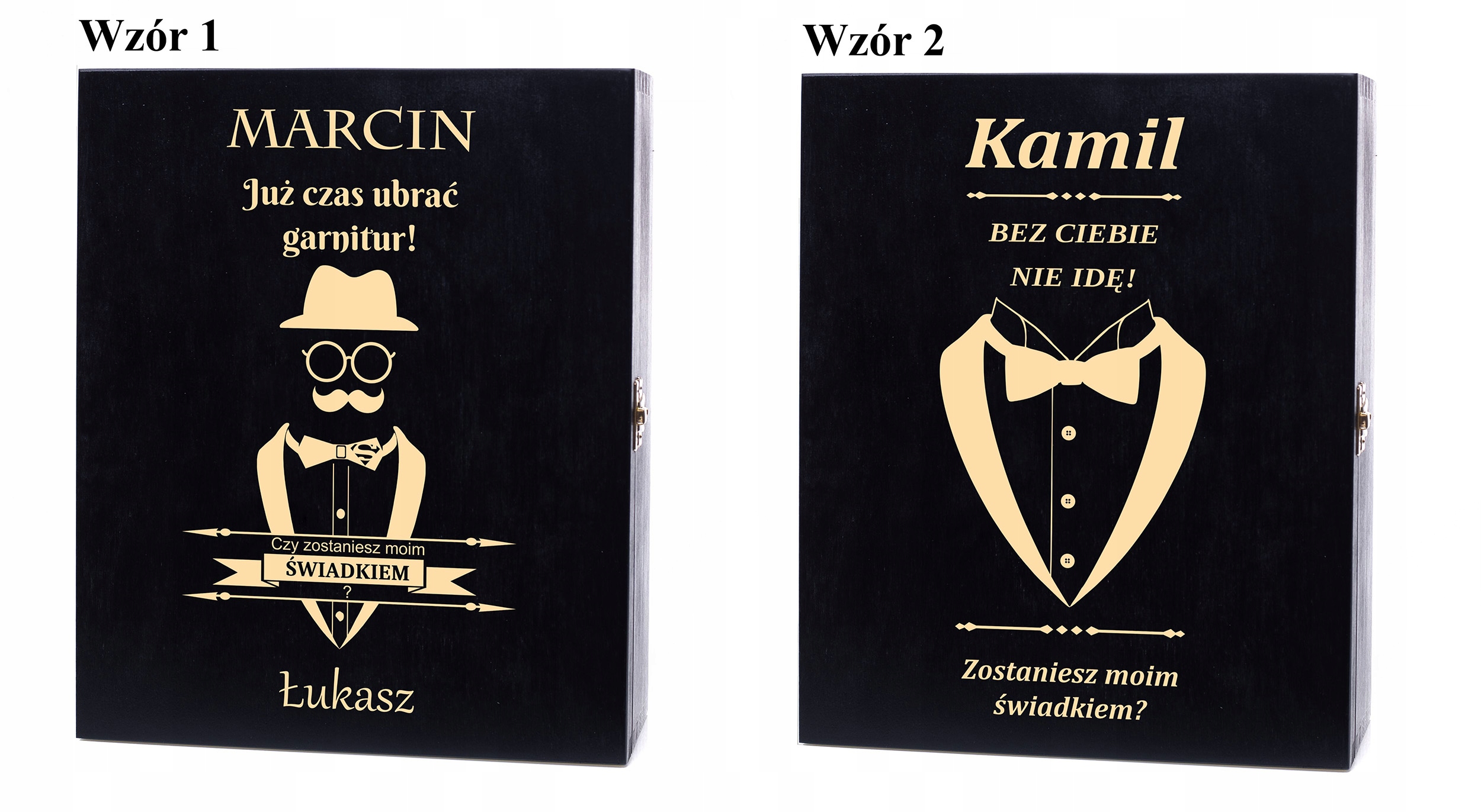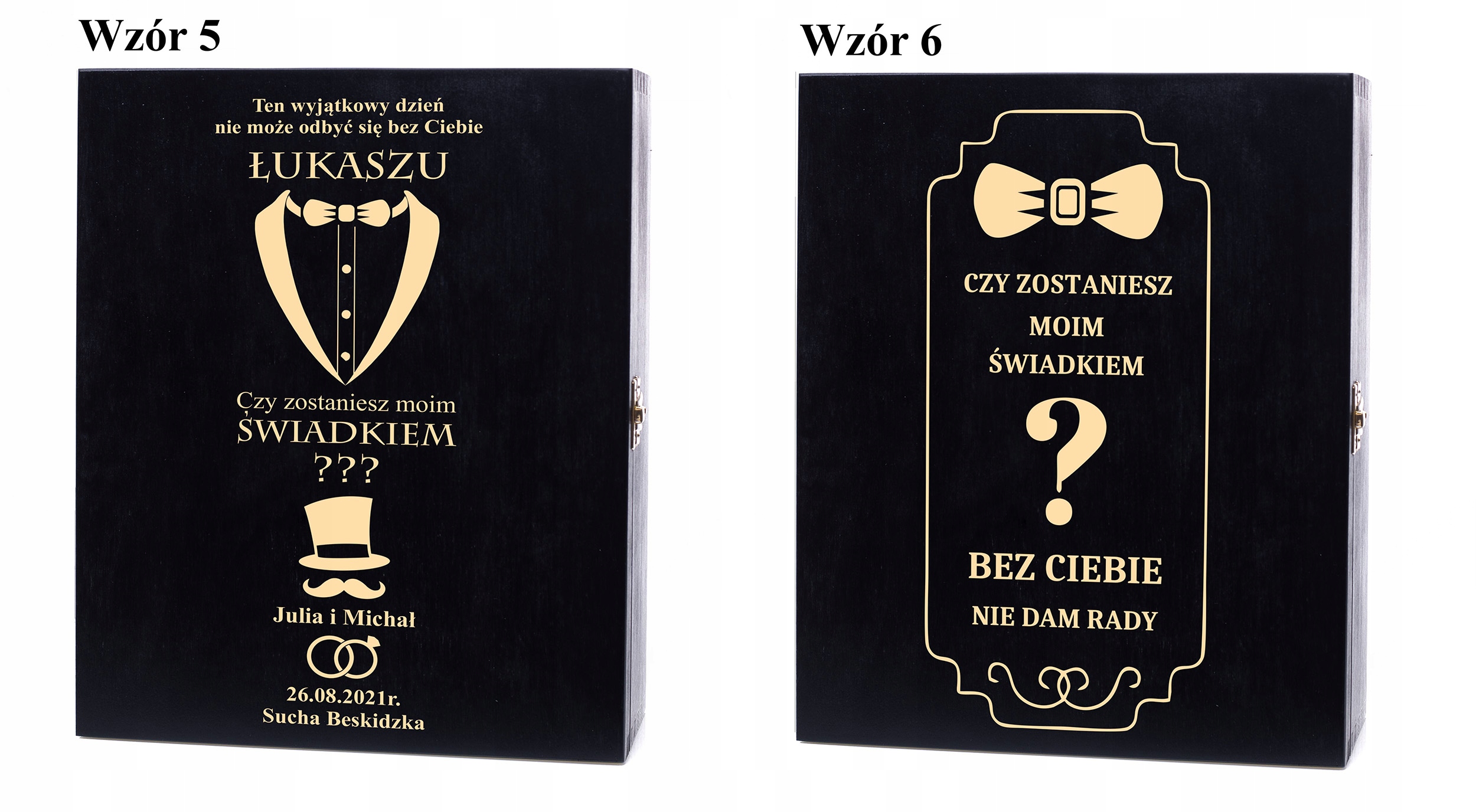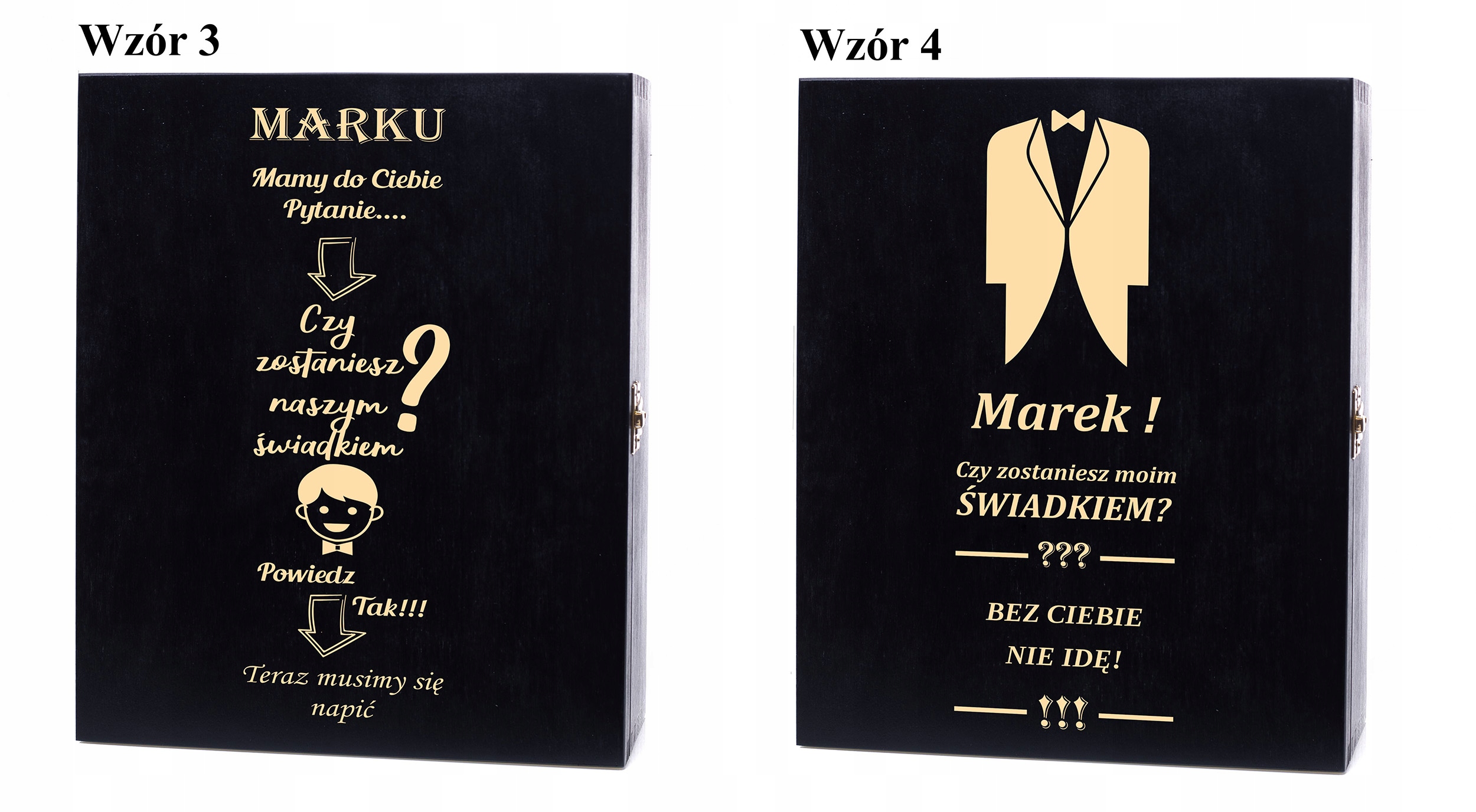 На аукционе ниже мы представляем Вам запрос будущему СВИДЕТЕЛЮ в виде деревянная коробка для виски. Вопрос, заданный в такой форме, обязательно убедит вашего друга выполнить эту важную функцию на вашей церемонии. Удивите своих свидетелей уникальной формой приглашения. Гравировка на деревянной шкатулке, несомненно, станет сувениром на очень долгое время. Этот подарок вызовет улыбку на лице каждого получателя.