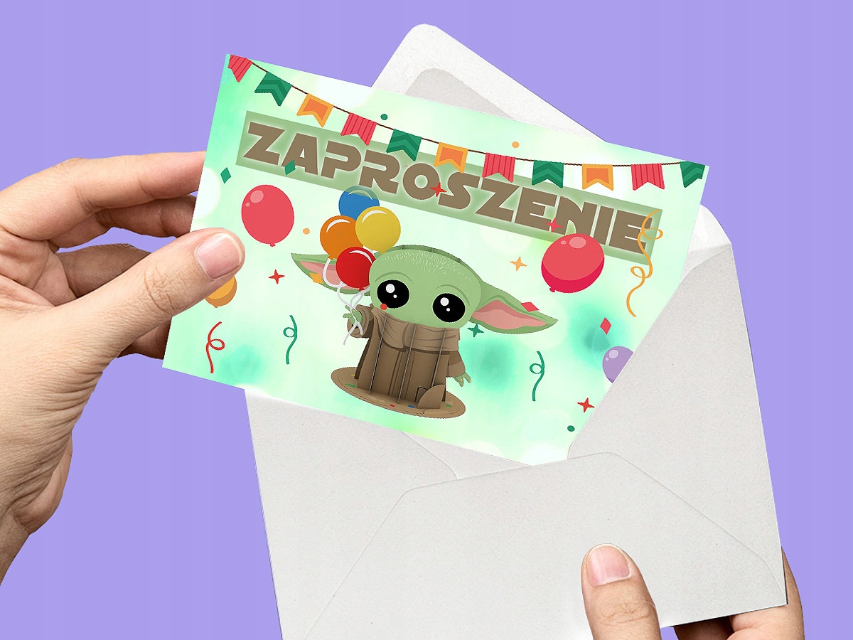 ZAPROSZENIA DLA DZIECI BABY YODA GROGU NA URODZINY DZIECKA + KOPERTY