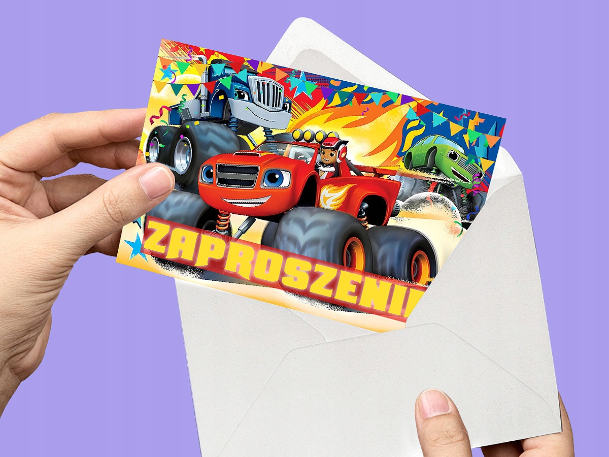 ZAPROSZENIA DLA DZIECI BLAZE I MEGA MASZYNY NA URODZINY DZIECKA + KOPERTY