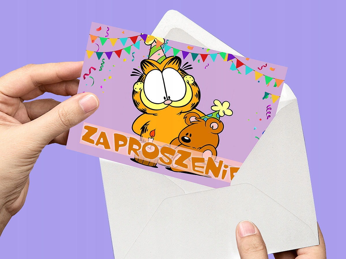 ZAPROSZENIA DLA DZIECI GARFIELD NA URODZINY DZIECKA + KOPERTY