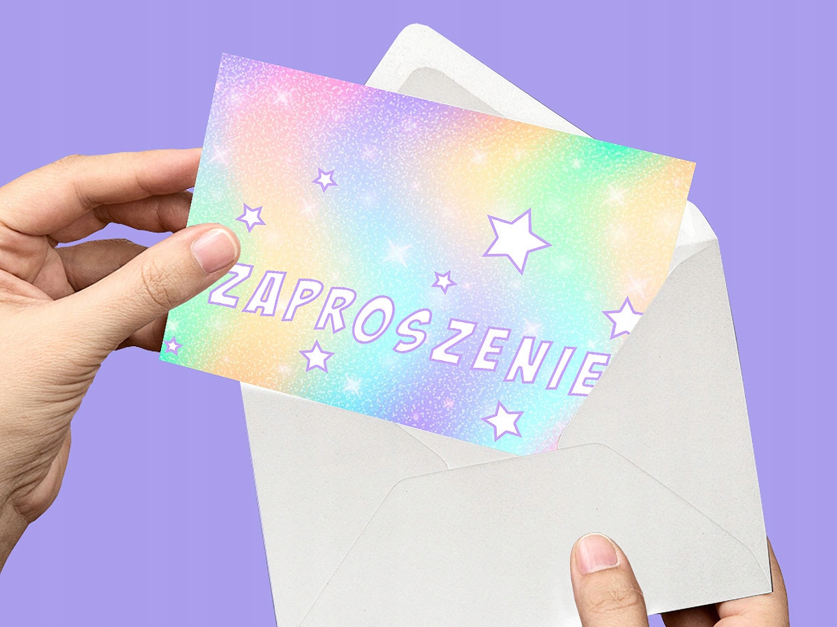ZAPROSZENIA DLA DZIECI STAR GWIAZDA BROKAT TĘCZA NA URODZINY DZIECKA + KOPE