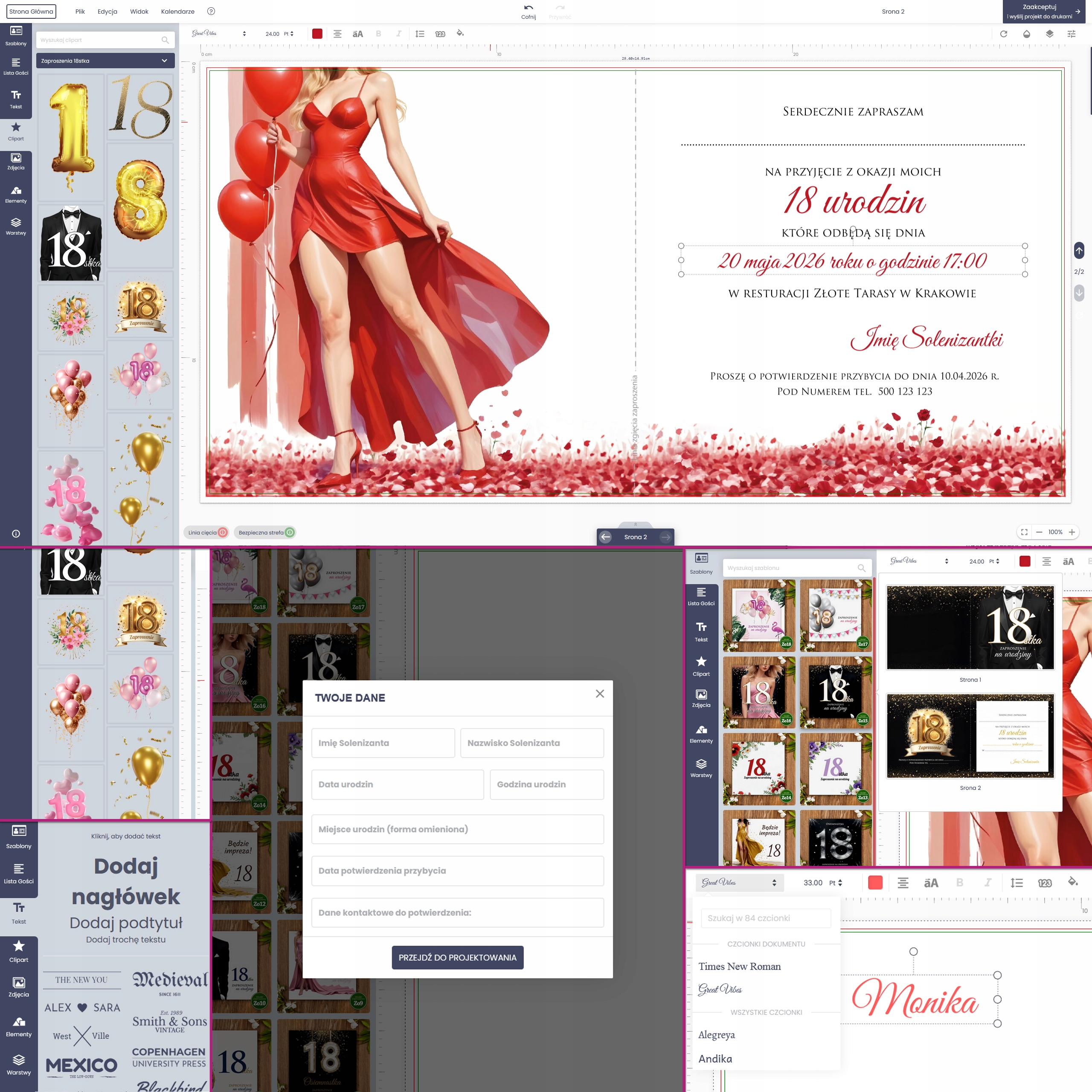 Zaproszenia na 18 urodziny Osiemnastkę Personalizowane - Kreator Online