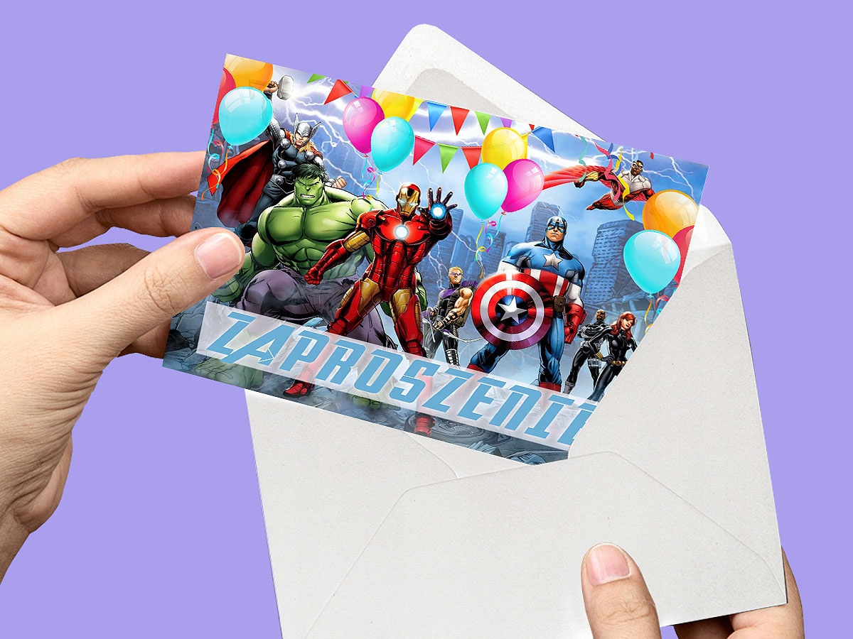 ZAPROSZENIE AVENGERS IRONMAN HULK THOR NA URODZINY DZIECKA + KOPERTA GRATIS