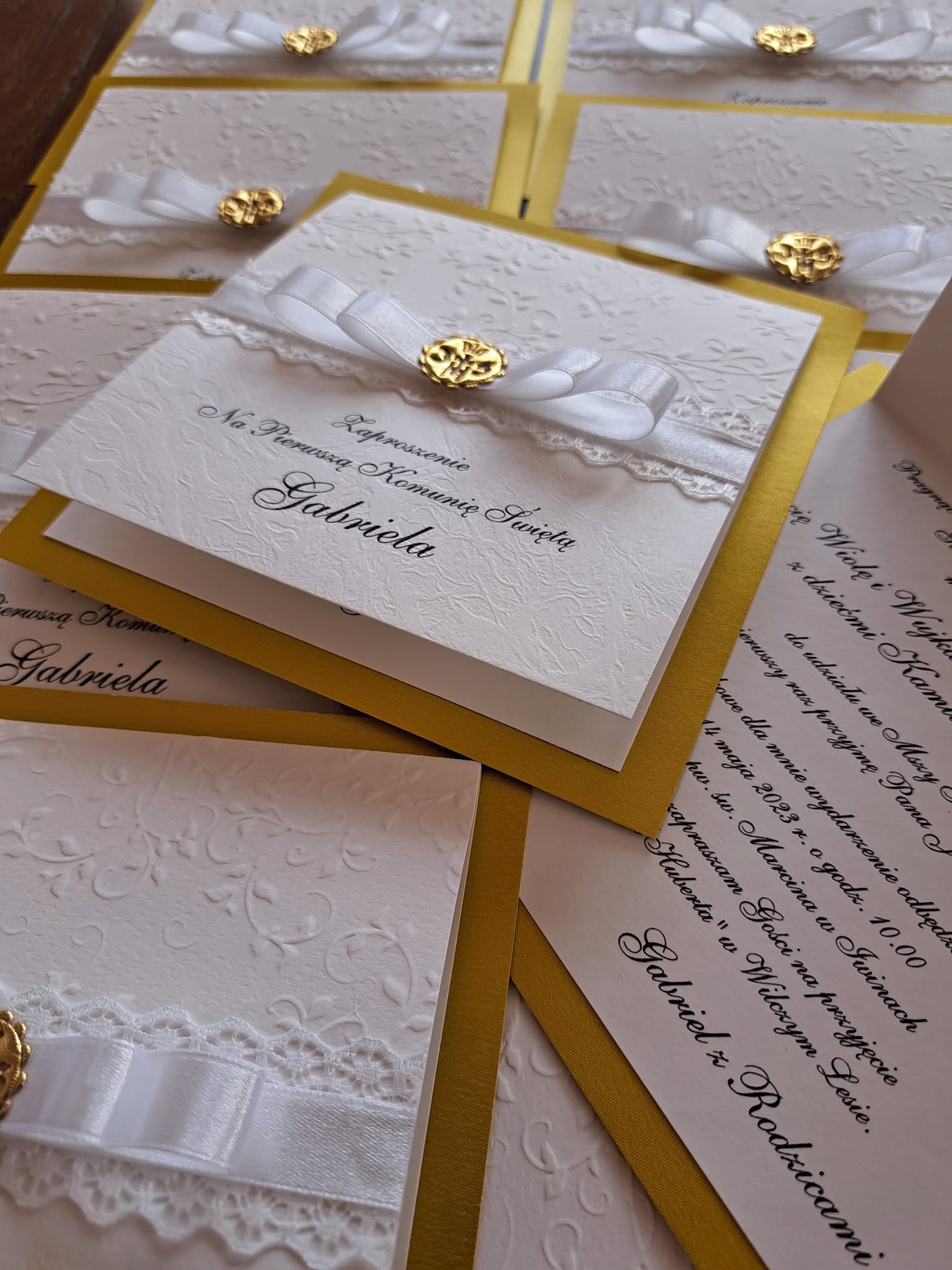 ZAPROSZENIE KOMUNIJNE Zaproszenia na komunię złote białe