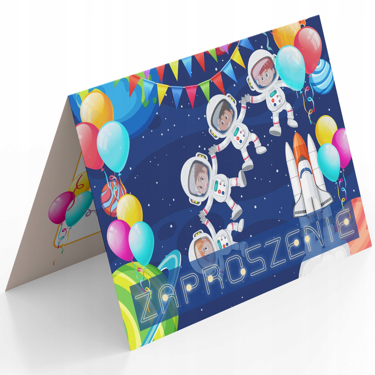 ZAPROSZENIE KOSMOS RAKIETA PLANETY NA URODZINY DZIECKA + KOPERTA GRATIS
