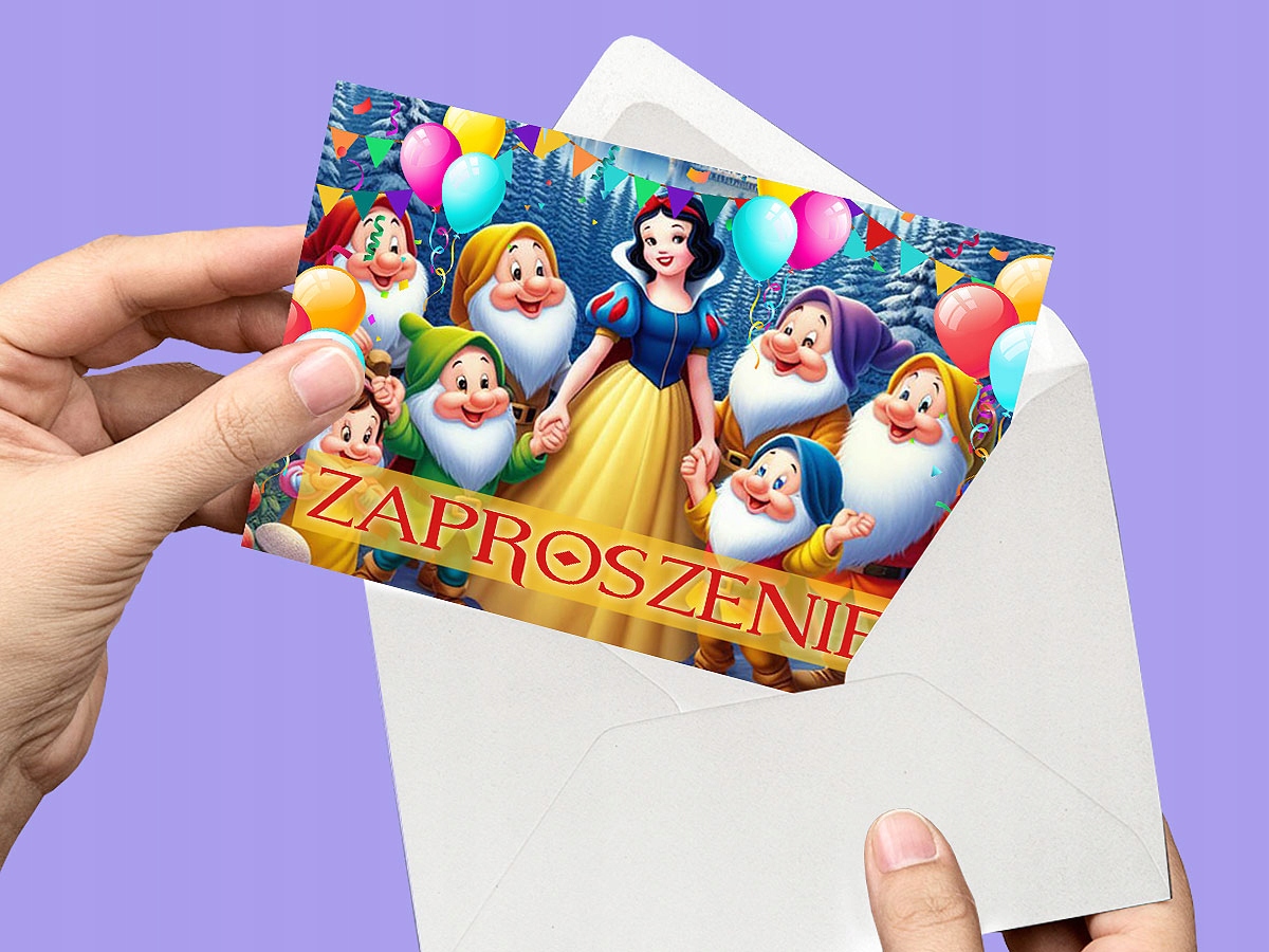 ZAPROSZENIE KRÓLEWNA ŚNIEŻKA I SIEDMIU KRASNOLUDKÓW NA URODZINY DZIECKA