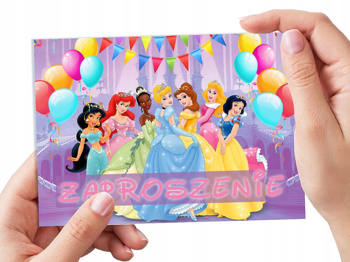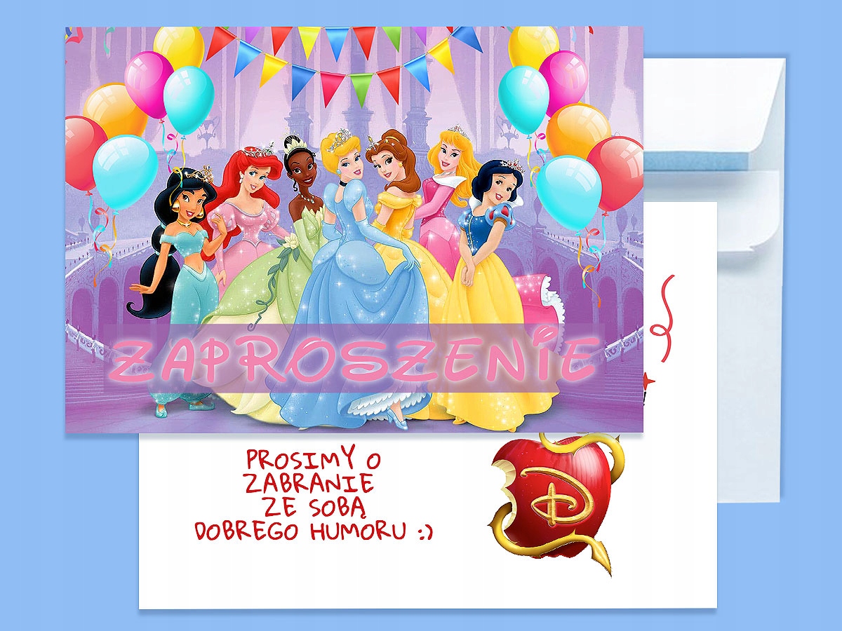 ZAPROSZENIE KSIĘŻNICZKI KOPCIUSZEK CALINECZKA NA URODZINY DZIECKA + KOPERTA