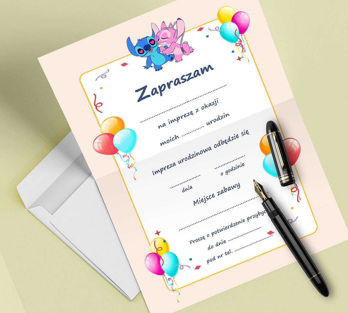 ZAPROSZENIE LILO I STICH ANGEL ANGELA ANDZIA NA URODZINY DZIECKA + KOPERTA