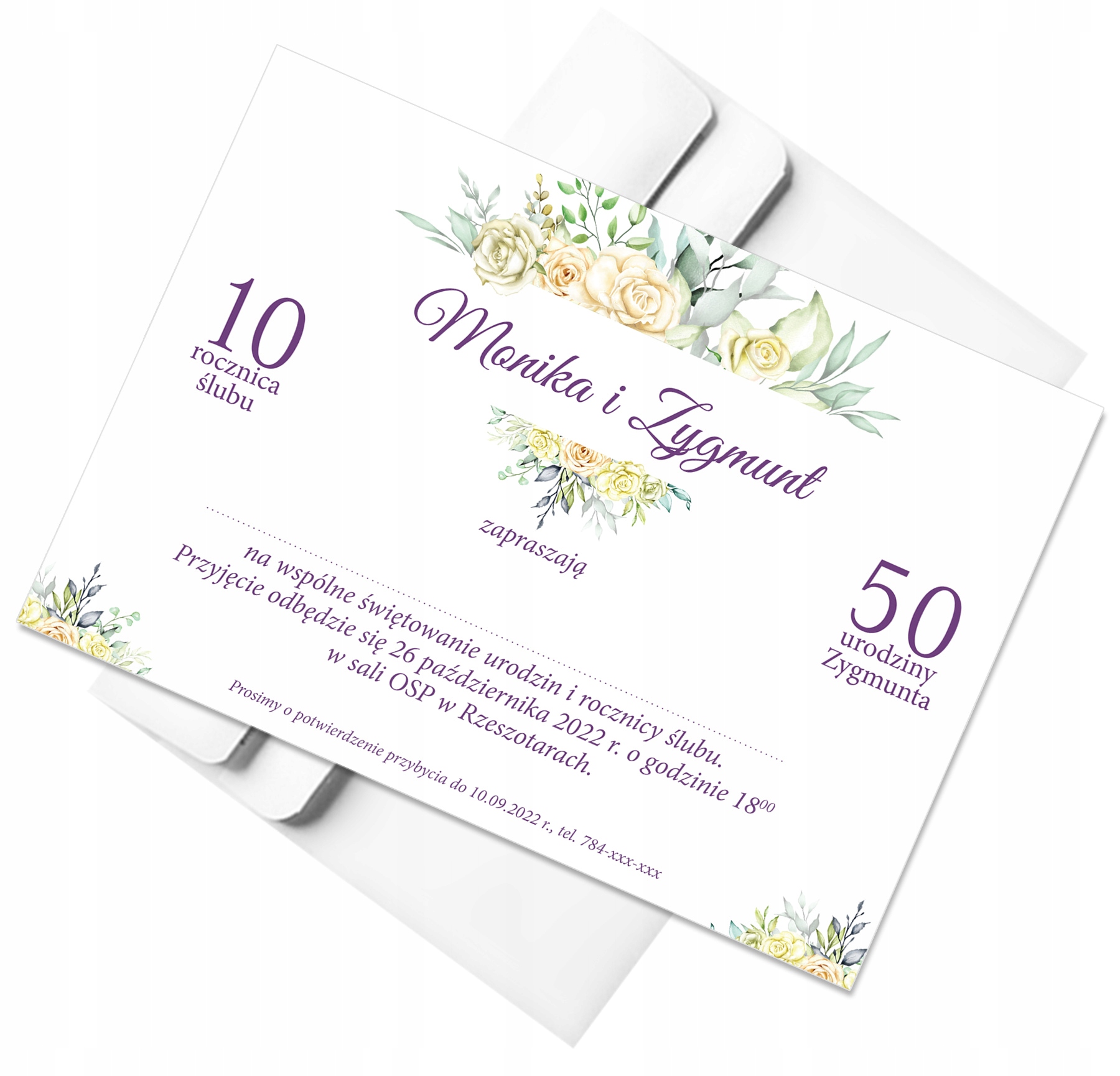 Zaproszenie na rocznicę ślubu i urodziny razem