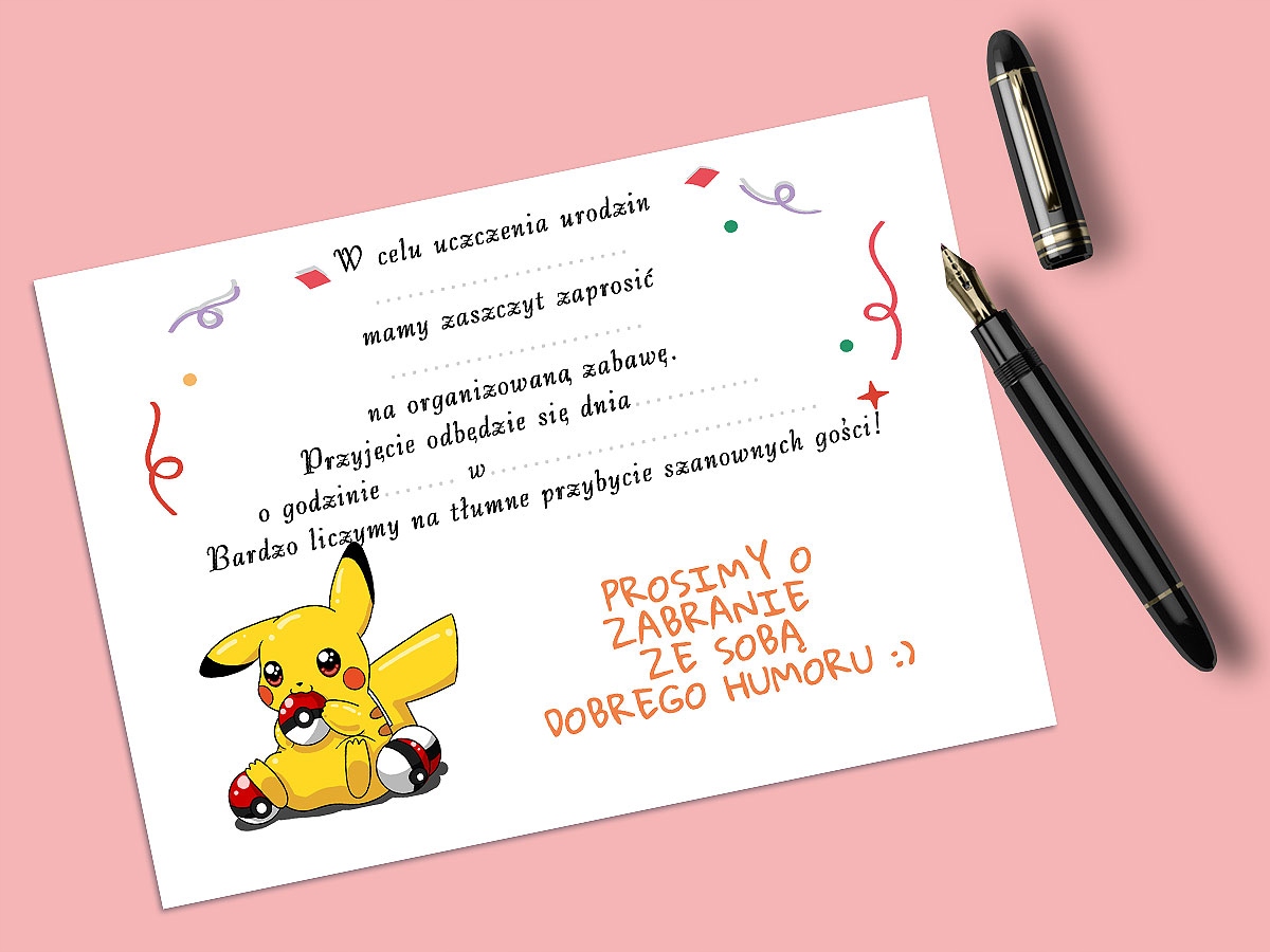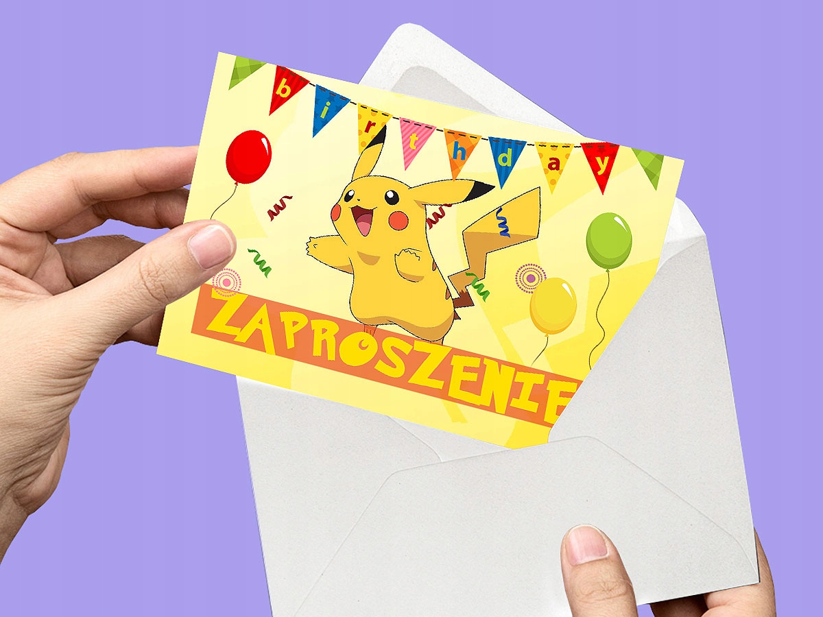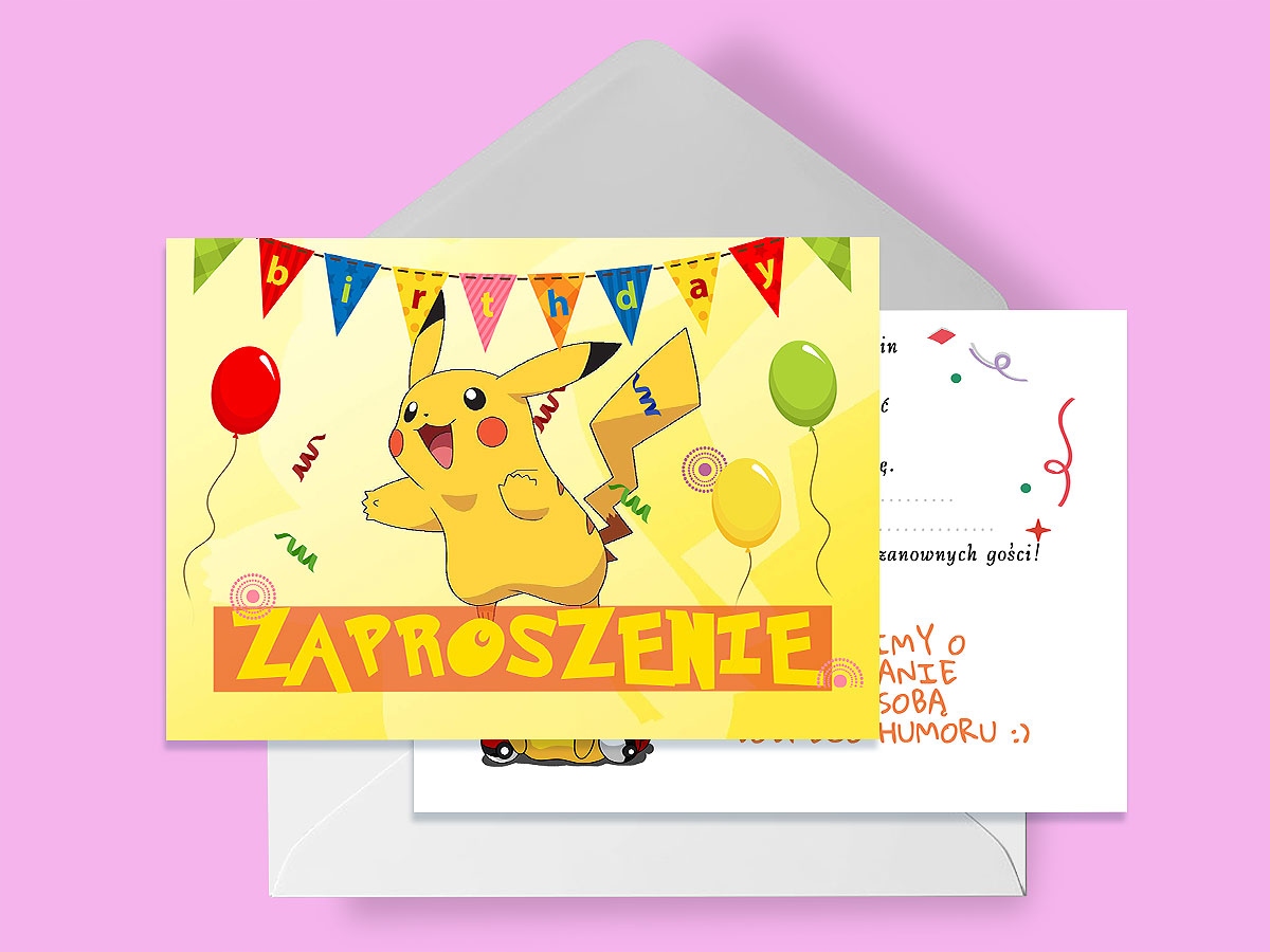 ZAPROSZENIE PIKACHIU NA URODZINY DZIECKA + KOPERTA GRATIS JAKOŚĆ