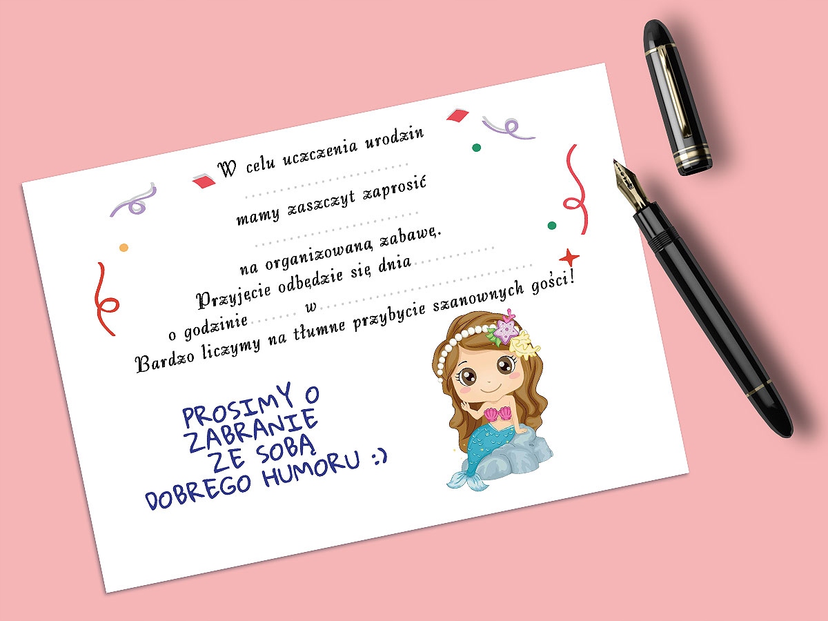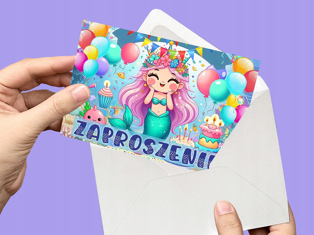 ZAPROSZENIE SYRENKA MAŁA SŁODKA NA URODZINY DZIECKA + KOPERTA GRATIS