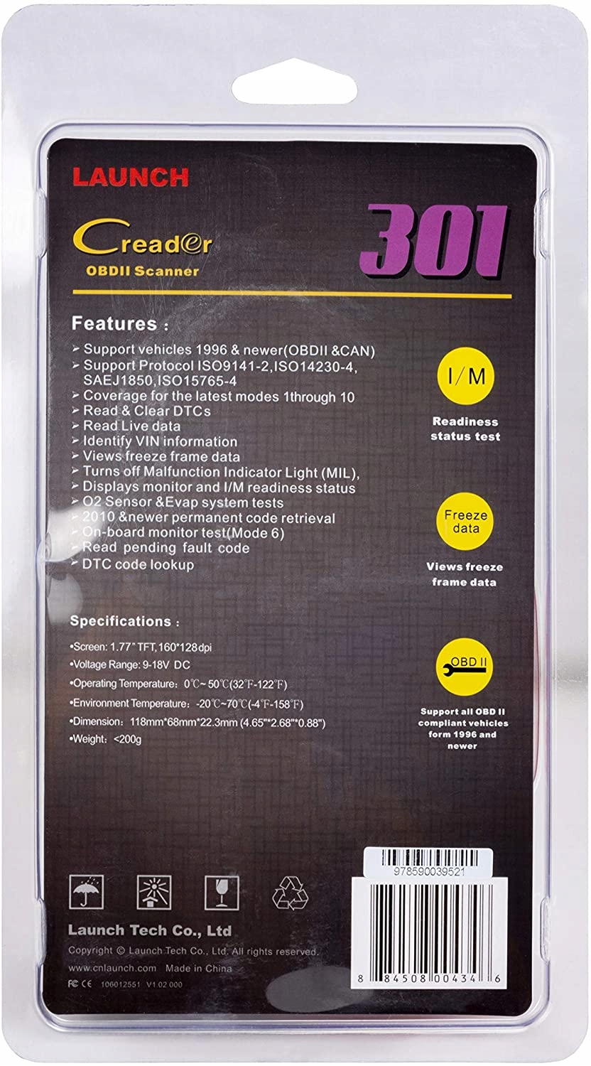 Creader 301-небольшой красочный читатель с полными диагностическими функциями OBDII/EOBD. ISO15765-4. Быстрое сканирование и ошибка двигателя. Предоставьте полные диагностические функции OBDII/EOBD, проверьте, что не так с вашим автомобилем, и, возможно, вы его исправьте. Поддерживаемые протоколы, такие как ISO9141-2, ISO14230-4, SAEJ1850 и ISO15765-4. Подается на английском, французском, русском, испанском, немецком, итальянском, португальском языке. Поддержка различных типов транспортных средств. Легко носить