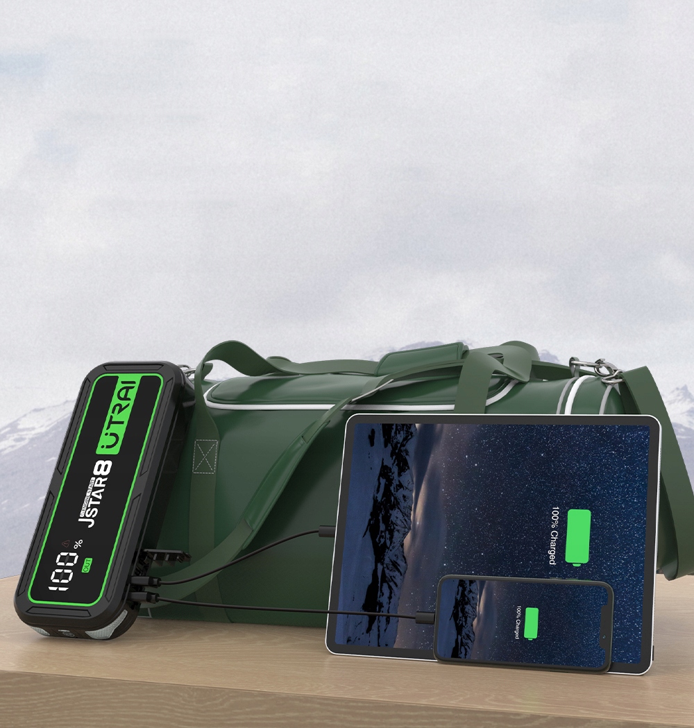 Реальная емкость портативного пускового устройства составляет 74 Втч. Без обмана, как и у других пусковых устройств, он может заводить транспортные средства 60 раз на одном заряде. Поставляется с 2 выходными портами USB, соединительный блок JS-8 может одновременно питать 2 устройства, такие как телефон, планшет, умные часы, камера и т. д. Включайте свои устройства в любое время и в любом месте.