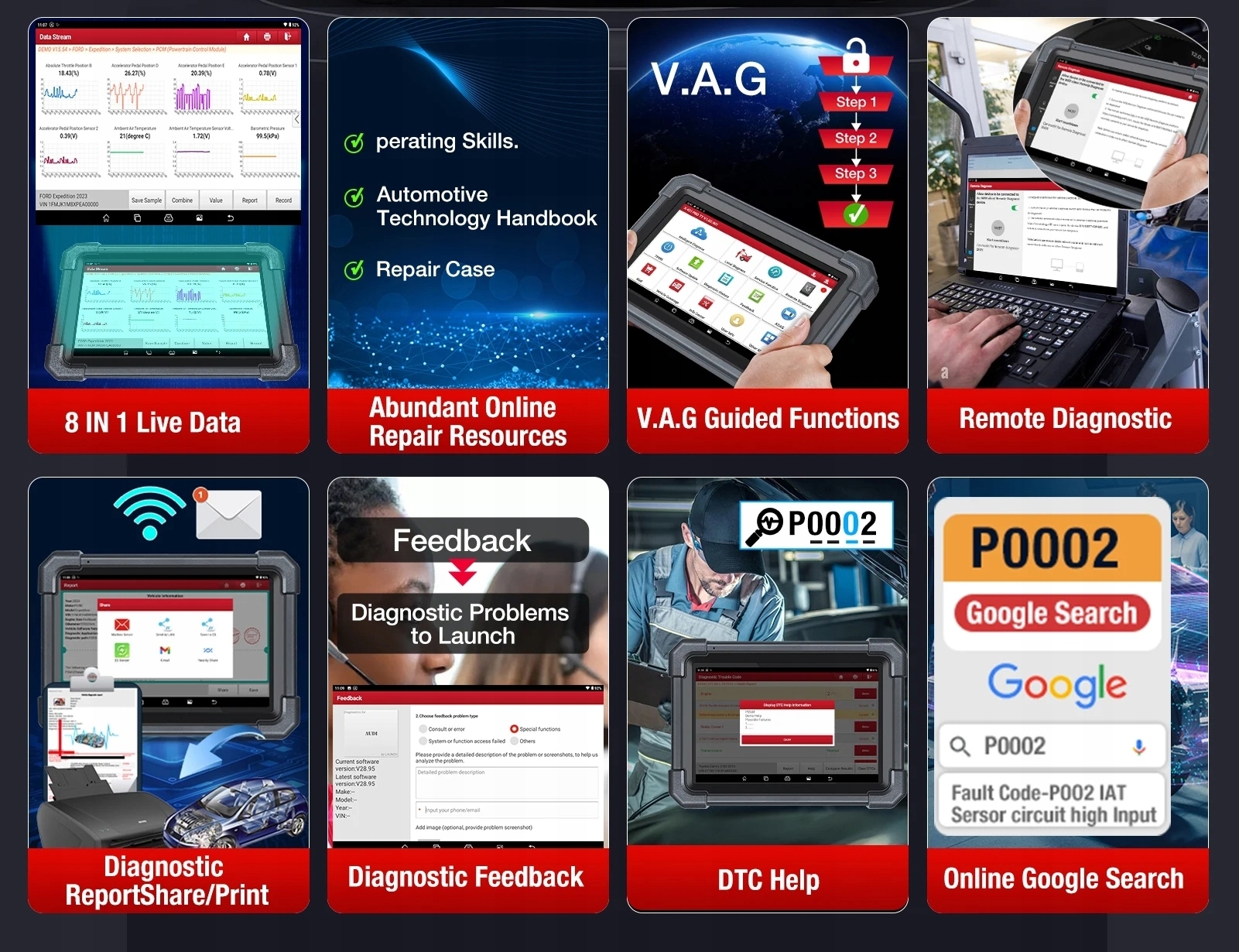 Тестер-это независимое мастерское устройство, диагностическое сочетание, оснащенное 8-дюймовым сенсорным экраном, бронированным, корпусом мастерской Rugget! питается очень быстрой операционной системой Android 9.0 и обеспечивает беспроводную диагностику через интерфейс Bluetooth. Последняя и самая передовая версия программного обеспечения, созданного Запуск инженеров !!!