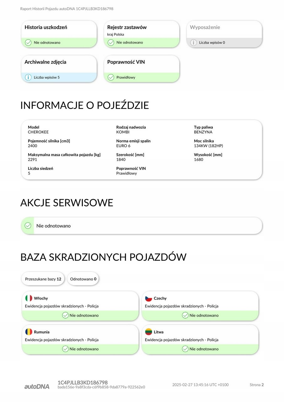 Просматривая «Jeep Cherokee 2,4i 182PS Зарегистрированная служба», вы можете быть уверены, что данный товар из каталога «V (2014-)» будет доставлен из Польши и проверен на целостность. В цене товара, указанной на сайте, учтена доставка из Польши. Внимание!!! Товары для Евросоюза, согласно законодательству стран Евросоюза, могут отличаться упаковкой или наполнением.