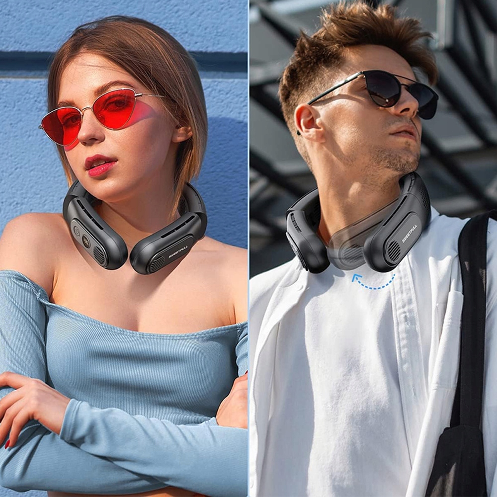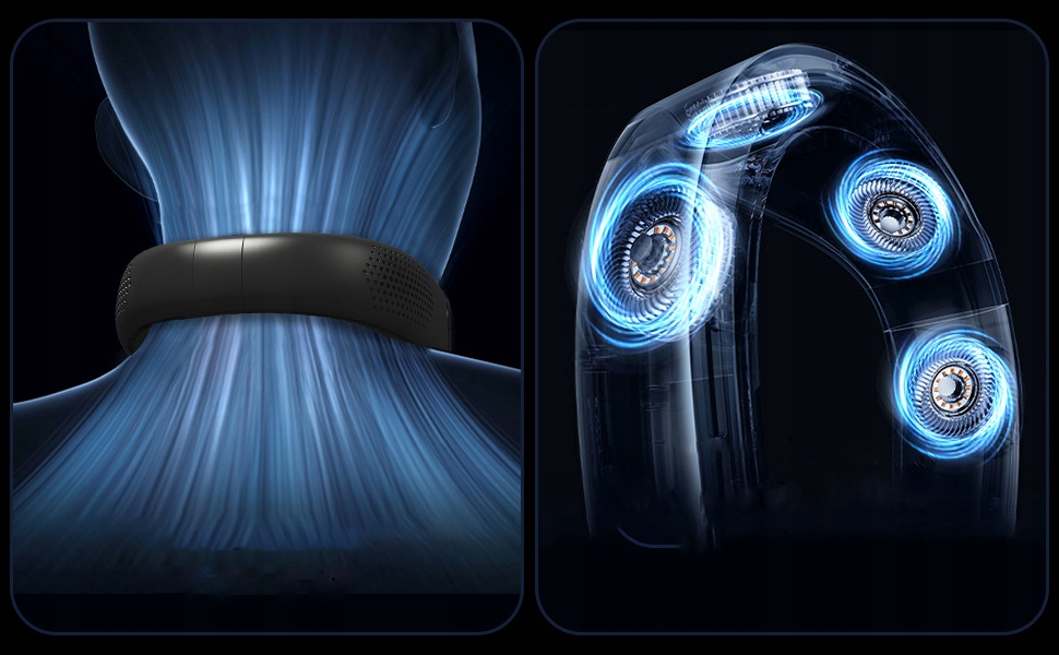 - ✔ Этот вентилятор шеи оснащен инновационными 4 турбинными двигателями, со многими выходами воздуха, 3 секунды быстрого охлаждения. Время.