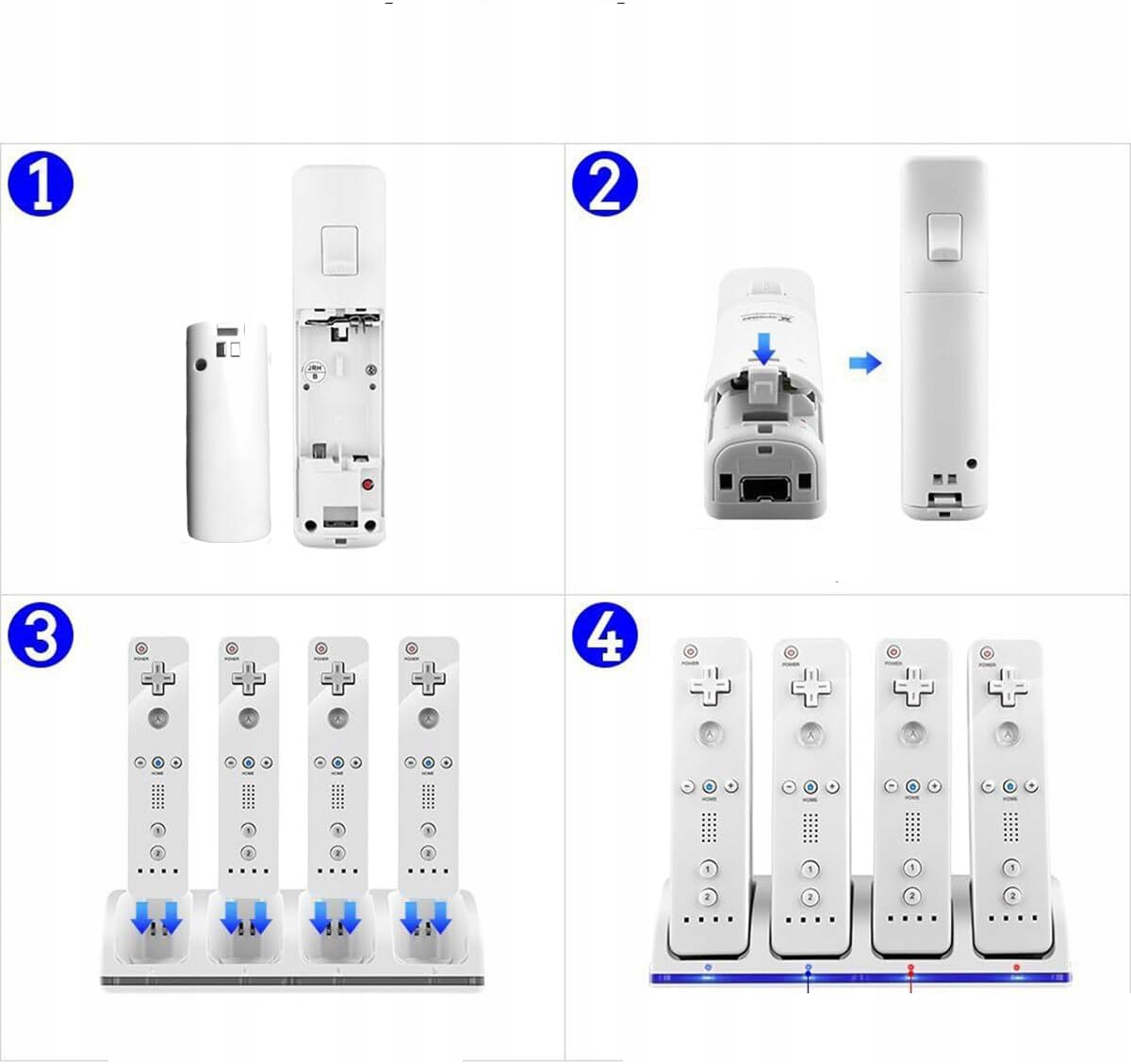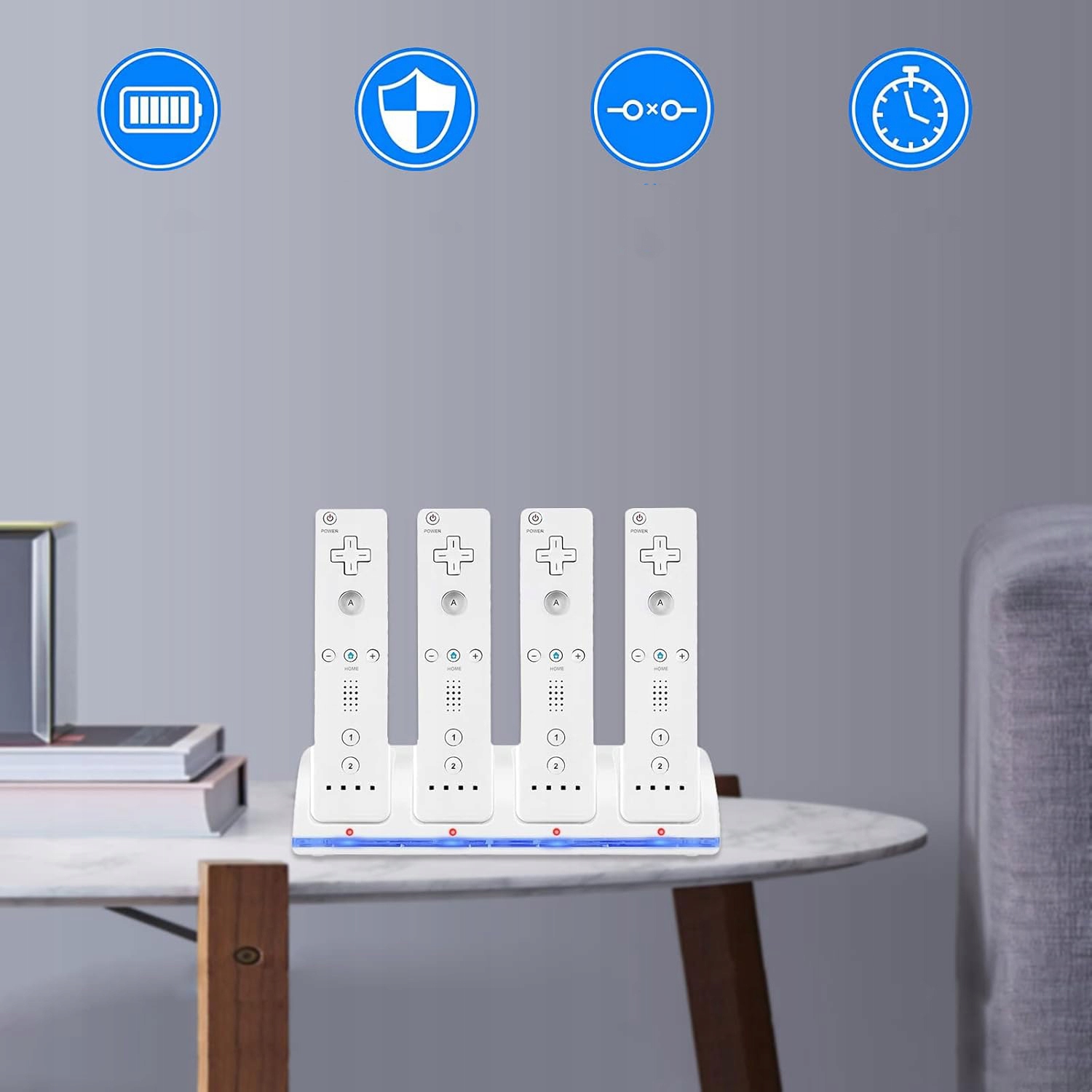 💡💡💡 Быстрая зарядка — эта док-станция для зарядного устройства совместима с зарядкой контроллера Wii. Он имеет порт для зарядки 4 шт., поэтому он может одновременно заряжать 4 контроллера. И у него есть 4 шт., подходящих для аккумуляторных блоков. Вам не придется беспокоиться о проблемах с питанием.