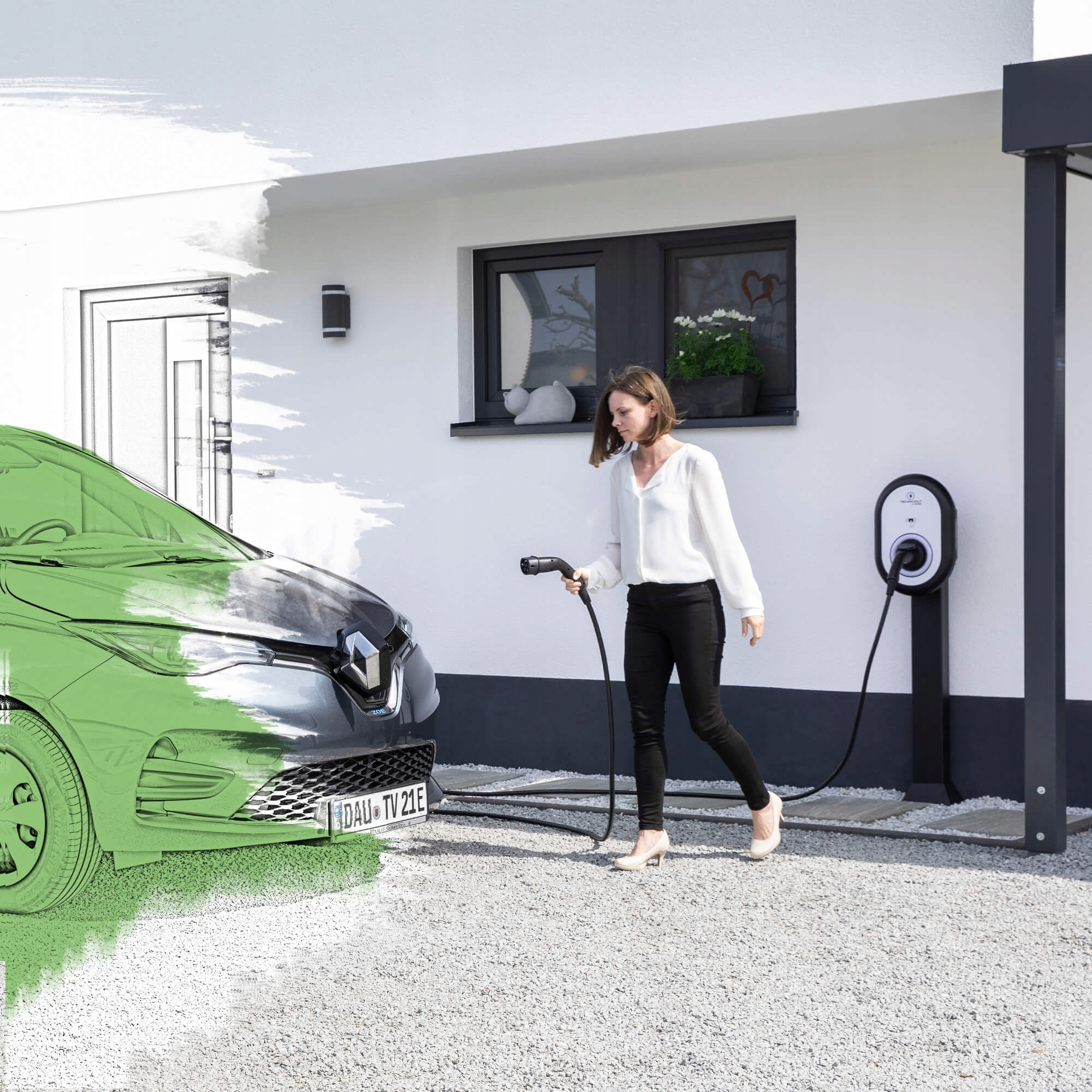 TECHNIVOLT 1100 обеспечивает быструю и безопасную зарядку дома. Также это позволяет существенно сократить время зарядки по сравнению с зарядными устройствами с обычной розеткой. Кроме того, наличие собственной зарядной станции дома дает еще одно большое преимущество перед общественными зарядными станциями: вы можете самостоятельно определить поставщика электроэнергии и, следовательно, стоимость зарядки вашего электронного автомобиля.