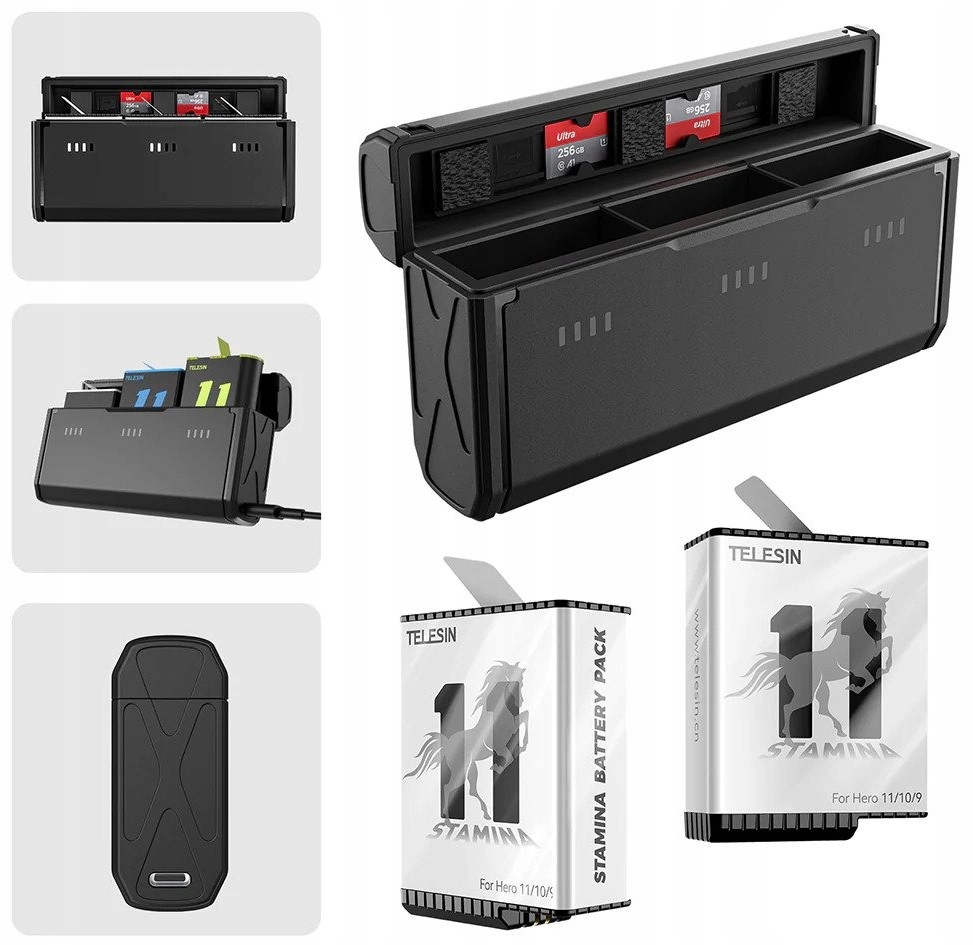 ✅ БЫСТРОЕ ЗАРЯДНОЕ УСТРОЙСТВО, КОРОБКА НА 3 АККУМУЛЯТОРА, АККУМУЛЯТОРЫ, КАРТЫ ПАМЯТИ ДЛЯ КАМЕРЫ GOPRO 9/10/11 ЧЕРНЫЙ