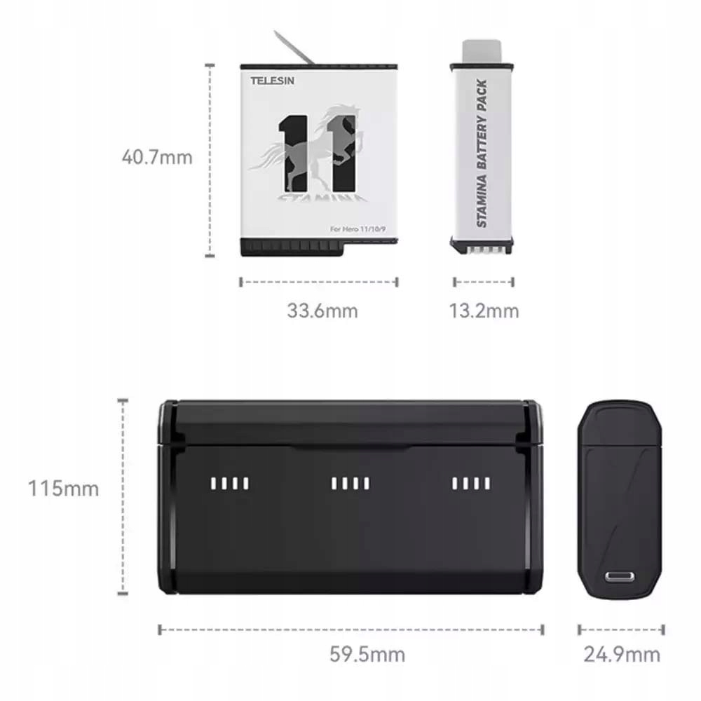 ЗАРЯДНИЙ ПРИСТРІЙ 2x АКУМУЛЯТОР STAMINA ДЛЯ GOPRO 11 10 9