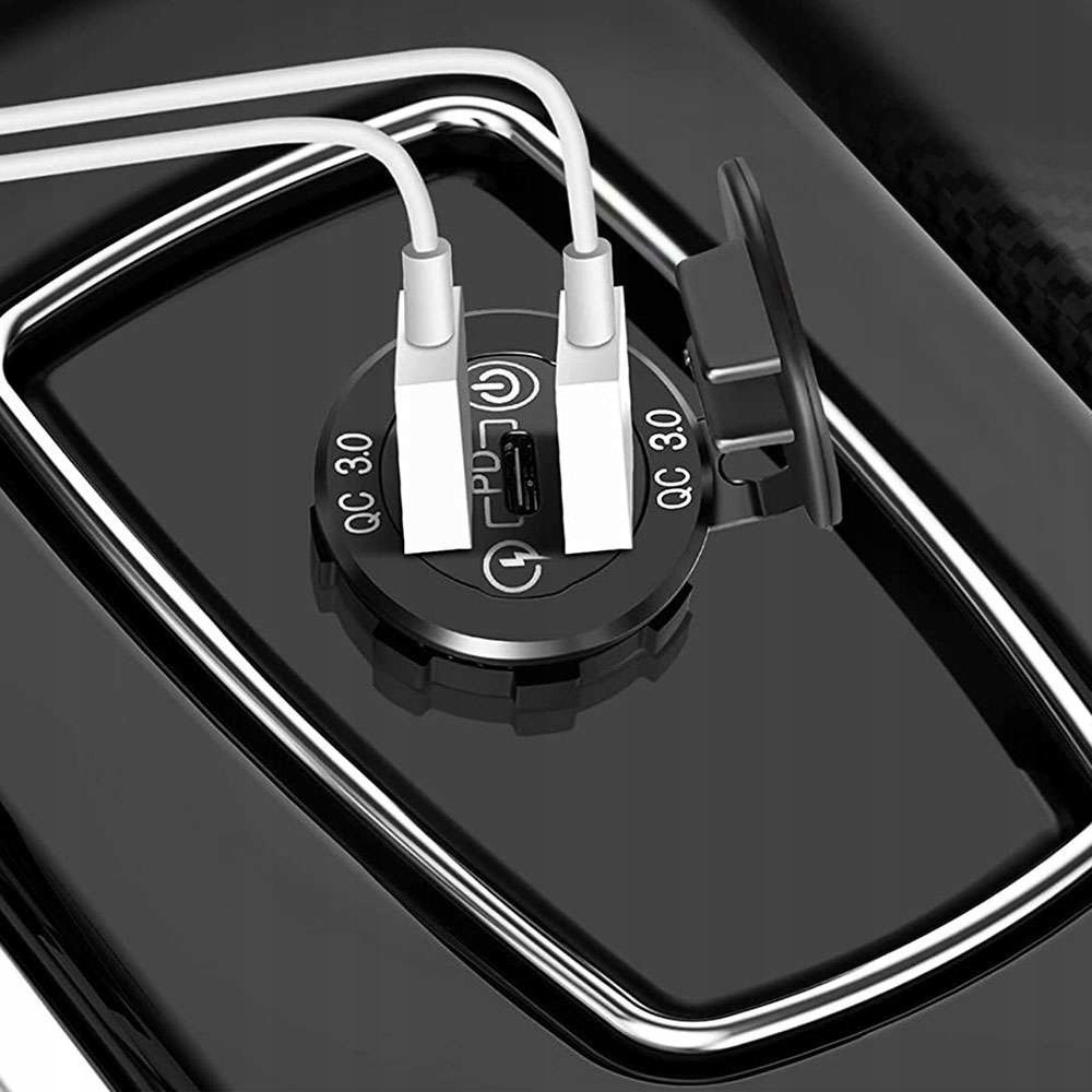 ▶️ Автомобильное зарядное устройство Светодиодная розетка Alogy Mini Car Charge для блока питания мотоцикла Разъемы Alogy 2x USB QC 3.0 + USB-C PD 60 Вт