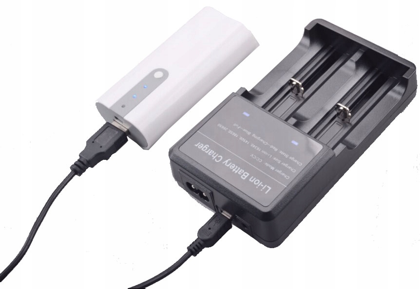 Зарядное устройство предназначено для зарядки аккумуляторов цилиндрической формы напряжением 3,7В. Можно одновременно заряжать два аккумулятора разной формы и емкости. К зарядному устройству прилагается кабель питания.
