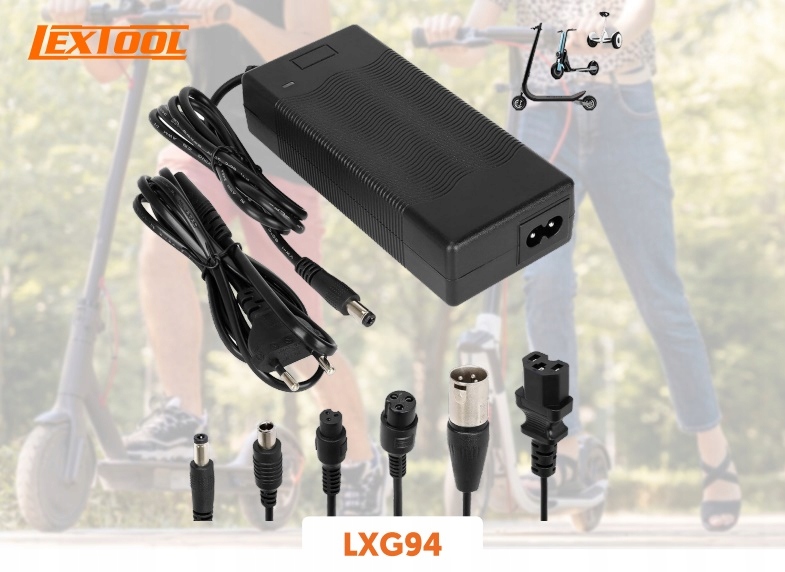 Универсальное и эффективное зарядное устройство для электросамокатов и других транспортных средств с литиевыми аккумуляторами напряжением 24–36 В. Благодаря широкому набору насадок — целых 6 сменных вилок и дополнительно 7 адаптеров (в том числе 5,5/2,1 мм, встроенных непосредственно в зарядное устройство) — устройство гарантирует максимальную совместимость с большинством моделей самокатов и электромобилей, доступных на рынке. Блок питания характеризуется стабильным выходным напряжением 42 В и током 2 А, что обеспечивает безопасную и быструю зарядку. Он оснащен рядом защит: от перенапряжения, перегрева и короткого замыкания. Прочный корпус и эргономичный дизайн делают его надежным инструментом как для домашнего использования, так и для профессионального обслуживания.