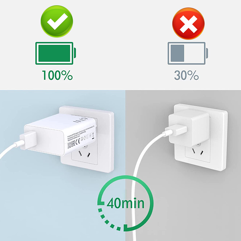 Зарядное устройство оснащено встроенным интеллектуальным чипом, который продлевает срок службы батареи, обеспечивая при этом безопасную зарядку и может эффективно предотвращать такие проблемы, как перегрев и перезарядка. Зарядное устройство поставляется с кабелем длиной 1 м. Разъем USB C с покрытием TPE обеспечивает удобное и износостойкое соединение, выдержал более 5000 испытаний на изгиб и более 5000 сроков службы при подключении и отключении, долговечен в использовании.
