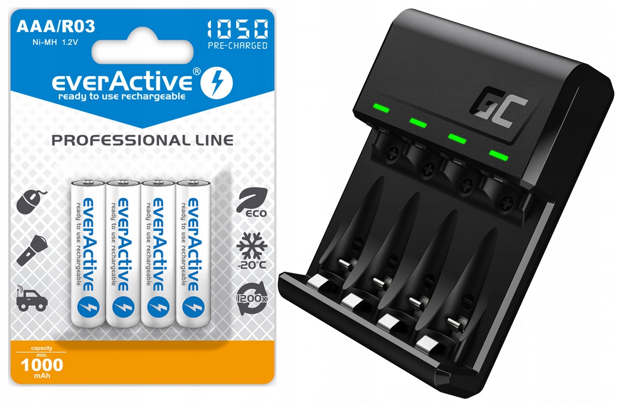 4 инновационных аккумулятора R03 AAA емкостью 1050 мАч everActive, изготовленных по технологии «готов к использованию».